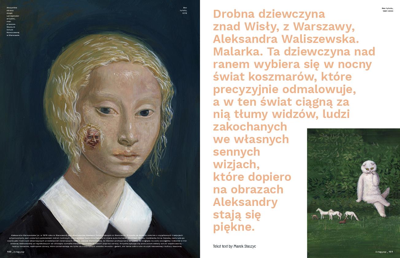 Przez cały numer odkopujemy słowiańskie pojęcia, mity i archetypy. Rozkładamy je na części pierwsze, by głębiej zrozumieć i świadomie wejść w ten baśniowy świat przeszłości. Milena Liebe w swoim cyklu odkrywania ciekawych postaci skupia się na rodzimych rzemieślnikach kulinarnych. Za tą tajemniczą etykietką kryją się domorośli fascynaci grzebania w starych przepisach i podawania ich we współczesnej formie. Udało nam się też zadać dosłownie kilka pytań najsłynniejszej rodzimej artystce skupiającej się na naszym folku i związanych z nim wierzeniach – Aleksandrze Waliszewskiej. Malarka raczej nie udziela wywiadów, więc obudowaliśmy to opowieścią naszego specjalisty w temacie, Marka Staszyca. Odwiedzamy również sielskie mieszkanko aktorki Oriny Krajewskiej, a także rozmawiamy z gwiazdą rozdania naszych K MAG-owych nagród „Moskity” – piosenkarką Anią Leon.
