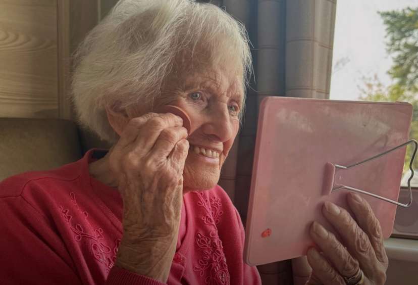 Joan Partridge mieszka w domu opieki Millcroft Care Home w Redditch, w hrabstwie Worcestershire. Od lat pasjonuje się makijażem i z dumą podkreśla, że to właśnie codzienny rytuał nakładania kosmetyków daje jej energię i pewność siebie. Największą sympatią darzy róż - zarówno jako kolor, jak i konkretny produkt kosmetyczny. Malowanie się sprawia jej radość, a jej entuzjazm szybko udziela się innym mieszkańcom oraz pracownikom domu opieki.