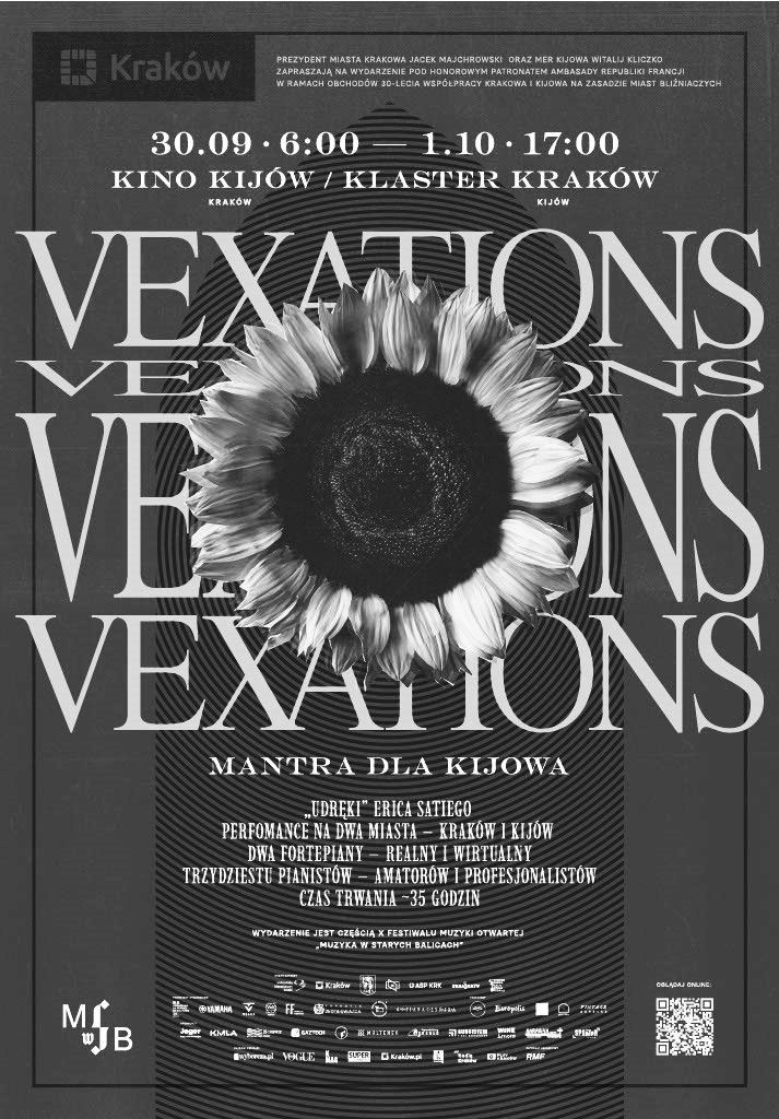 Performans jest unikatowym na skalę światową wydarzeniem, które przebiega na żywo w dwóch krajach. Jest przy tym wyrazem solidarności z Narodem Ukraińskim oraz wydarzeniem towarzyszącym Festiwalowi Muzyki Otwartej „Muzyka w Starych Balicach”. Skomponowane pod koniec XIX wieku „Vexations” to miniatura fortepianowa, której nie wykonano publicznie za życia kompozytora. Przeszkodę stanowił wymóg wykonania utworu 840 razy, co udało się dopiero amerykańskiemu kompozytorowi Johnowi Cage’owi i jego współpracownikom w 1963 roku.