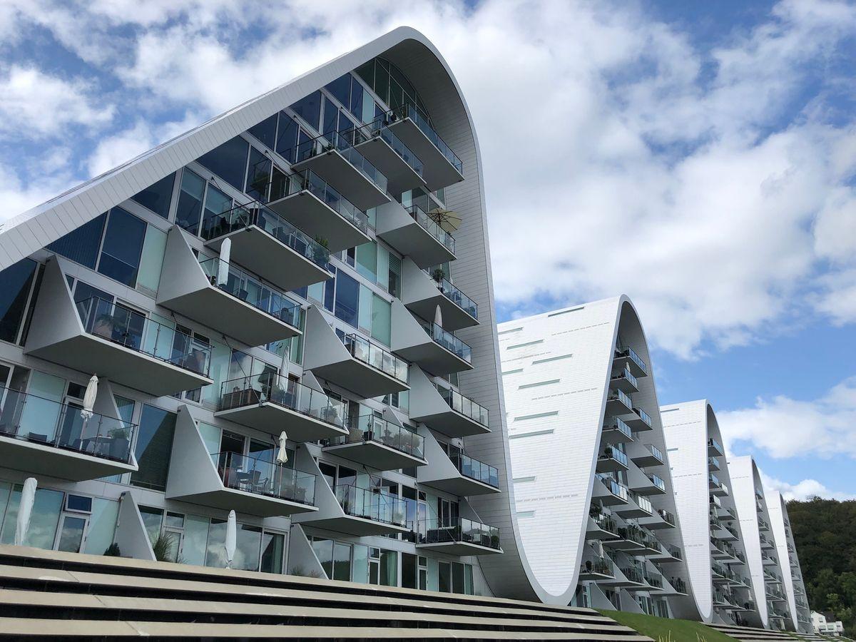Drugą ikoną Vejle jest tzw. „Fala”, czyli ekskluzywny apartamentowiec Boelgen (The Wave). To obsypane nagrodami architektonicznymi dzieło studia Henning Larsen Architects, które tym projektem nawiązało do Opery w Sydney, zaprojektowanej przez zmarłego w 2008 roku duńskiego architekta Jørna Utzona. W pięciu dziewięciopiętrowych „grzbietach fali” znajduje się 115 mieszkań z widokiem na promenadę i fiord. Co ciekawe, ta odważna i spektakularna inwestycja powstawała dwuetapowo. W 2009 roku wybudowano dwie pierwsze fale, ale z powodu światowego kryzysu na rynkach finansowych pozostałe trzy fale ukończono dopiero w 2017 roku. Teraz Boelgen można podziwiać w pełnej krasie i zastanawiać się, jak żyje mieszkańcom tak nietypowego budynku, z tak pięknym widokiem z okna.