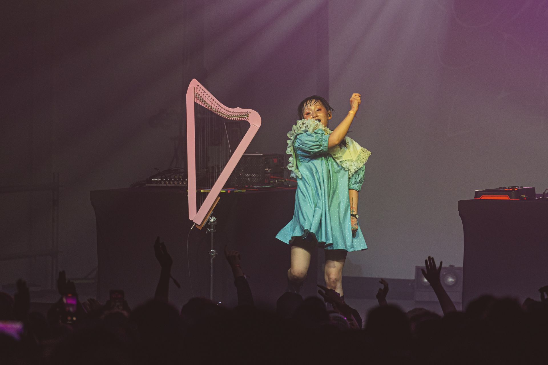 Szybka deportacja na drugi brzeg festiwalowej mapy i jesteśmy w namiocie Sceny Eksperymentalnej razem z Alice Longyu Gao i… jest dziwnie. Alice jest na scenie sama, obok niej elektroniczna harfa i trochę sprzętu, z którego puszcza podkłady do swoich piosenek. Niby eklektycznie i różnorodnie, ale jednak nie tak jak Haru Nemuri rok temu. Przez chwilę poczułem się trochę niezręcznie, jakbym bez pukania nagle wszedł do pokoju 13-latki.
