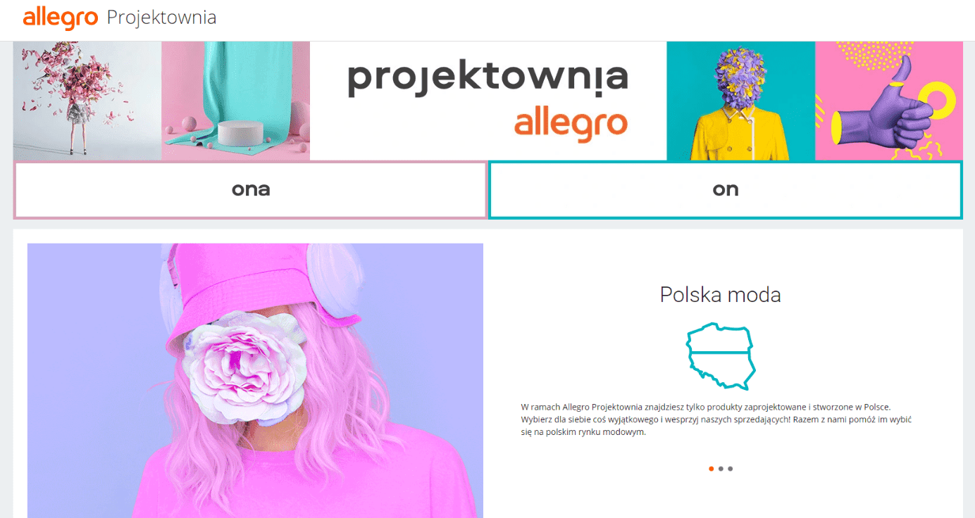 Platforma zakupowa Allegro już od samego początku istnienia pomaga polskim przedsiębiorcom rozwinąć skrzydła i zaistnieć w e-commerce. Obecnie skupia się na wsparciu polskich projektantów i producentów, tworząc specjalny program Allegro Projektownia. To nie tylko inicjatywa promująca polskie rzemieślnictwo modowe, ale też miejsce, w którym każdy może znaleźć niepowtarzalną odzież i bieliznę zaprojektowaną z dbałością o detale. Projekt powstał we współpracy działu Moda Allegro oraz znanej projektantki Ewy Minge. Do programu Allegro Projektownia zostały zaproszone firmy modowe, które zadeklarowały polskie pochodzenie swoich produktów.