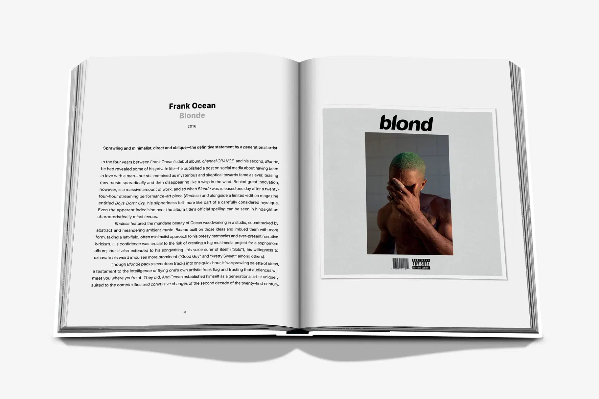 W książce czytelnicy znajdą wyróżnione albumy, które zostały wybrane przez zespół ekspertów Apple Music oraz ekskluzywną grupę artystów, w tym Maren Morris, Pharrella Williamsa, J Balvina, Charli XCX, Marka Hoppusa, Honey Dijon i Nia Archives, a także autorów piosenek, producentów i innych profesjonalistów z branży.