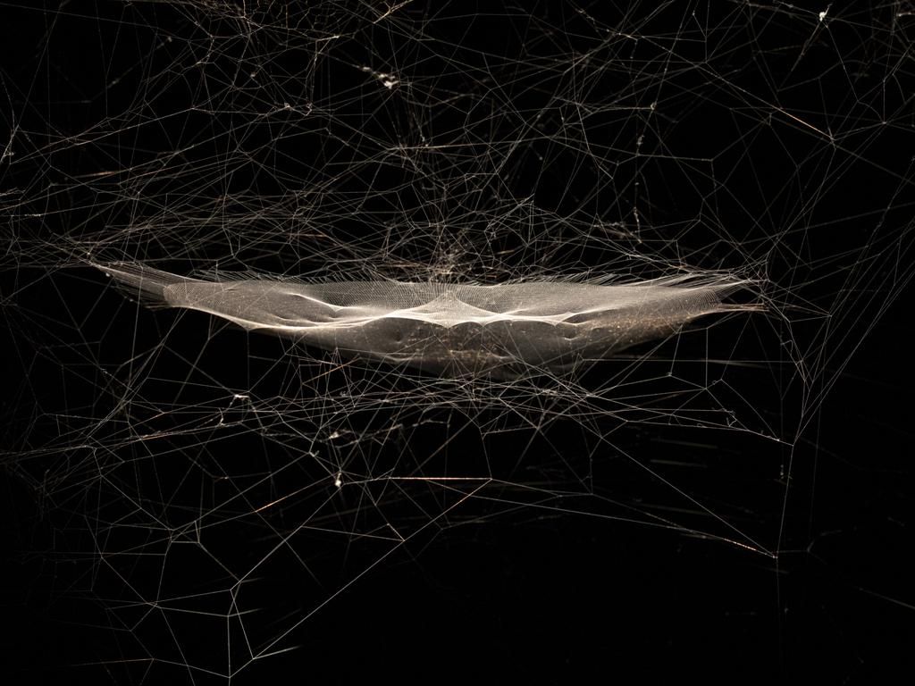 Na wystawie znajdują się rysunki wykonane tuszem z zanieczyszczeń w Bombaju: sonifikacja meteoroidów; modele 3D, które mapują pajęczyny na kosmiczne sieci i ściana sprasowanych maków dotkniętych zanieczyszczoną glebą. Tymczasem w zasłoniętym pokoju, pod blaskiem pajęczej sieci w szklanym pudełku, pięciu tasmańskich wróżbitów, którzy zostali świeżo przeszkoleni w korzystaniu z kart Arachnomancji Saraceno wykorzystują pająki i ich sieci do uczczenia „wspólnego spajania wszystkich elementów”