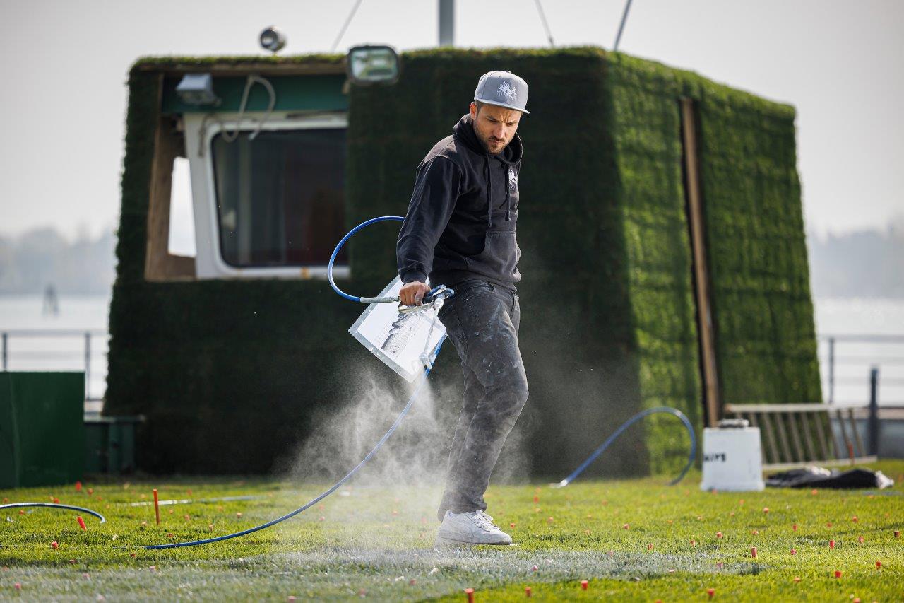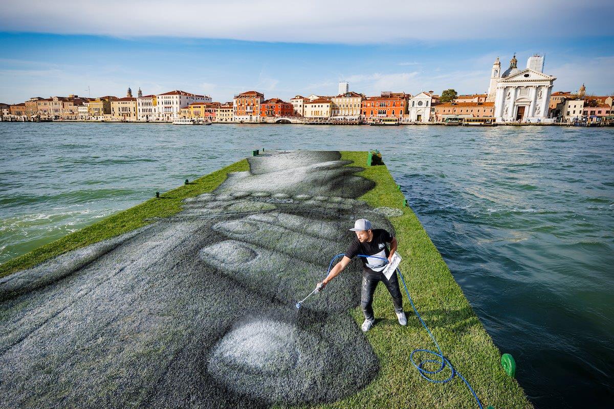 Dziełem sztuki jest ogromny obraz mierzący aż 240 m², namalowany na trawie, przy użyciu biodegradowalnych pigmentów wynalezionych przez samego artystę. Projekt został zainstalowany na klasycznej weneckiej łodzi, która codziennie opływa legendarne miejskie kanały, aby umożliwić publiczności podziwianie tego niezwykłego dzieła. Więcej na oficjalnym profilu artysty na Instagramie. instagram.com/saype_artiste