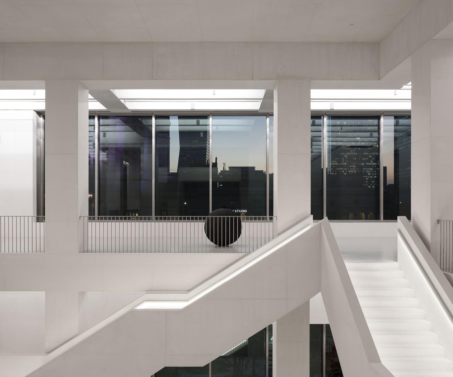Przy projektowaniu muzeum Phifer zdecydował się na zastosowanie kilku kluczowych materiałów i technologii, które mają na celu zapewnienie trwałości, estetyki oraz funkcjonalności budynku. Głównym materiałem zastosowanym w budynku jest barwiony w masie, biały beton architektoniczny, który Phifer wybrał nie tylko ze względu na jego atrakcyjność wizualną oraz możliwości wykończeniowe, ale także ze względu na wyzwania konstrukcyjne, wynikające z tego, że budynek osadzony jest nad tunelem metra.