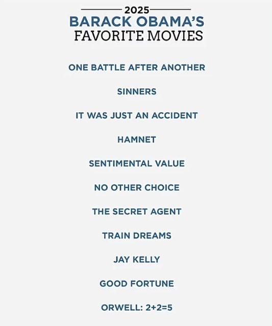18 grudnia były prezydent Stanów Zjednoczonych opublikował coroczne zestawienie kinowych fascynacji. Lista, od dekady publikowana tuż przed świętami, potwierdza, że Obama pozostaje najbardziej kinematograficznie wyrobioną głową państwa w historii amerykańskiej polityki.