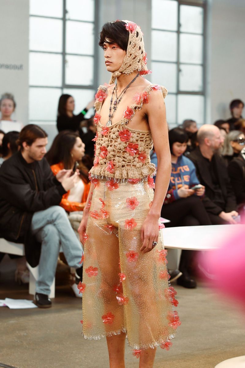 Słowacka projektantka Mata Durkovic, odpowiedzialna za markę MADbyMAD, podczas swojego pokazu zaprosiła gości do dziwnego ogrodu, gdzie zamiast gleby czy łodyg dominowały plastikowe peleryny, tkane struktury przypominające płatki orchidei oraz miriady kryształków, kwiatuszków i perełek.