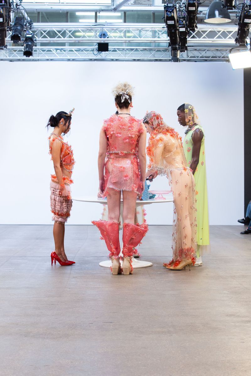 Pokaz kolekcji zatytułowany „Pink Matrix” najpierw przypominał klasyczny catwalk, jednak od początku niektórzy z modeli stawali przy plastikowym stole. Ostatecznie, postać okutana w kolorowe, przezroczyste struktury położyła się na meblu, a inna modelka zaczęła odcinać kwiatki z jej stroju, które zostały następnie podarowane pierwszemu rzędowi gości.