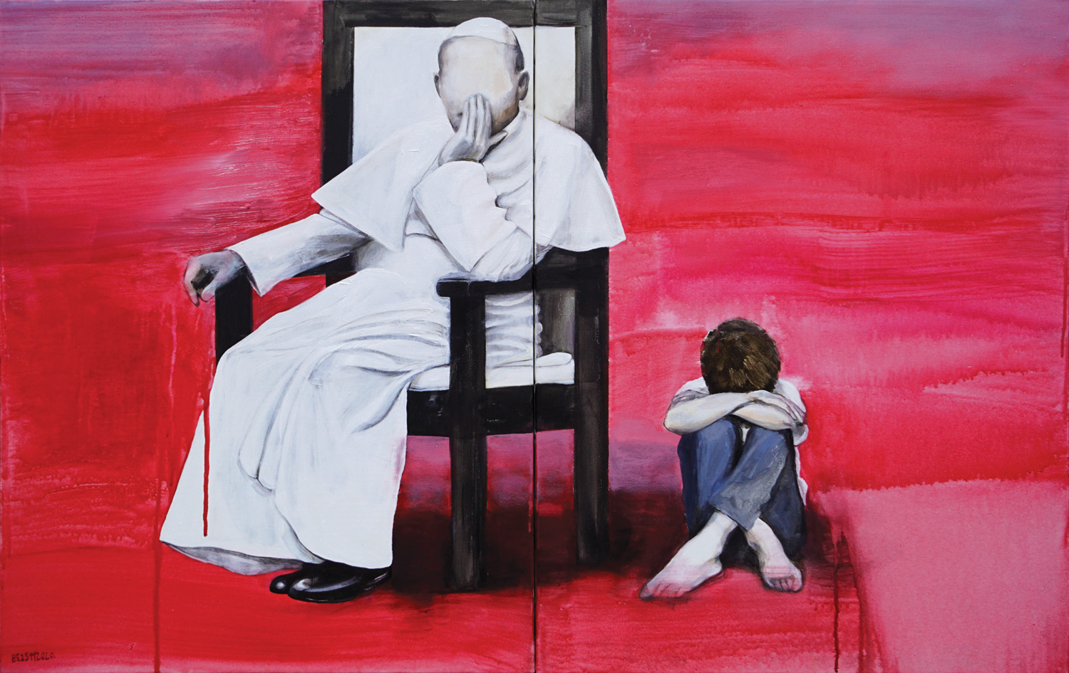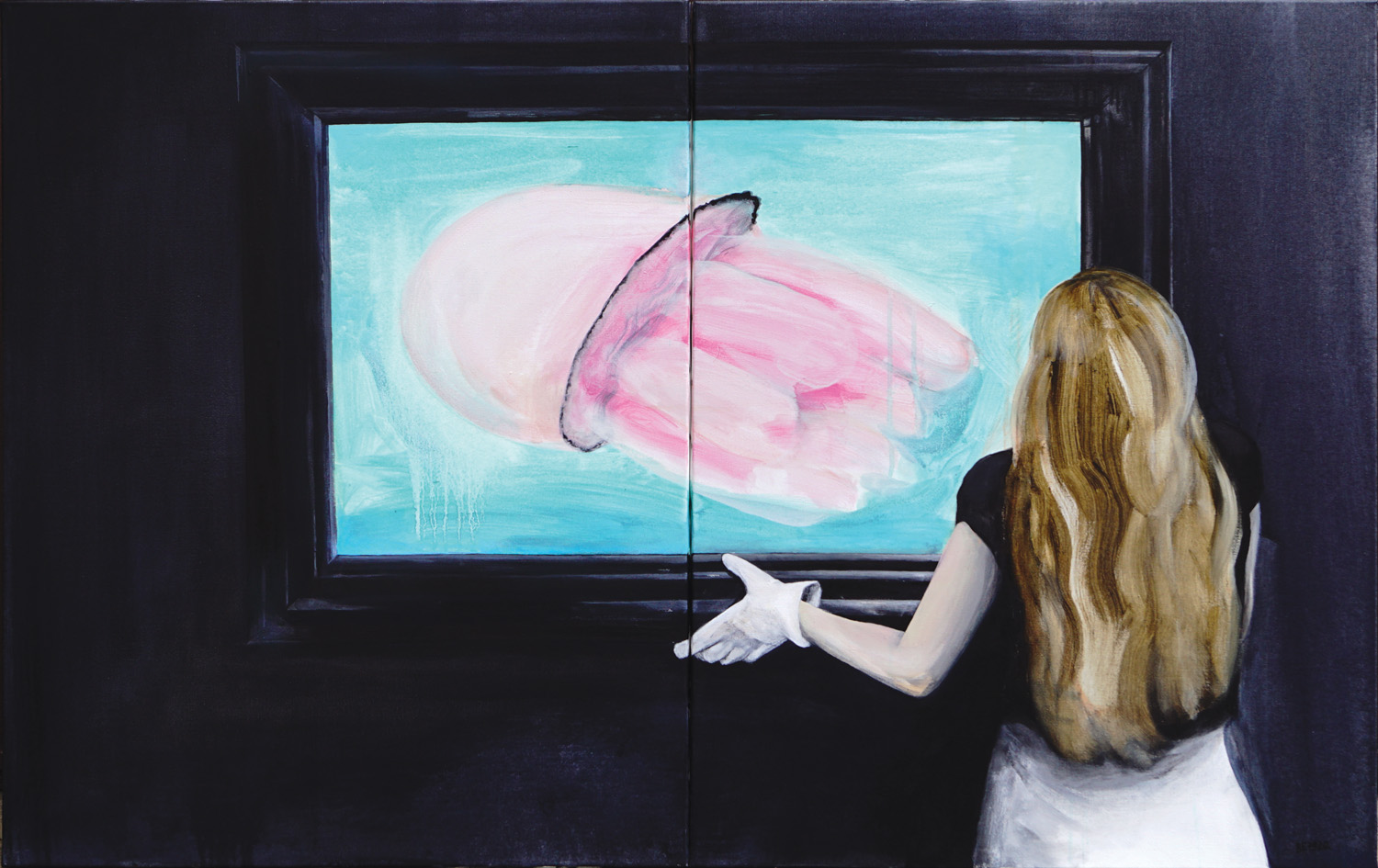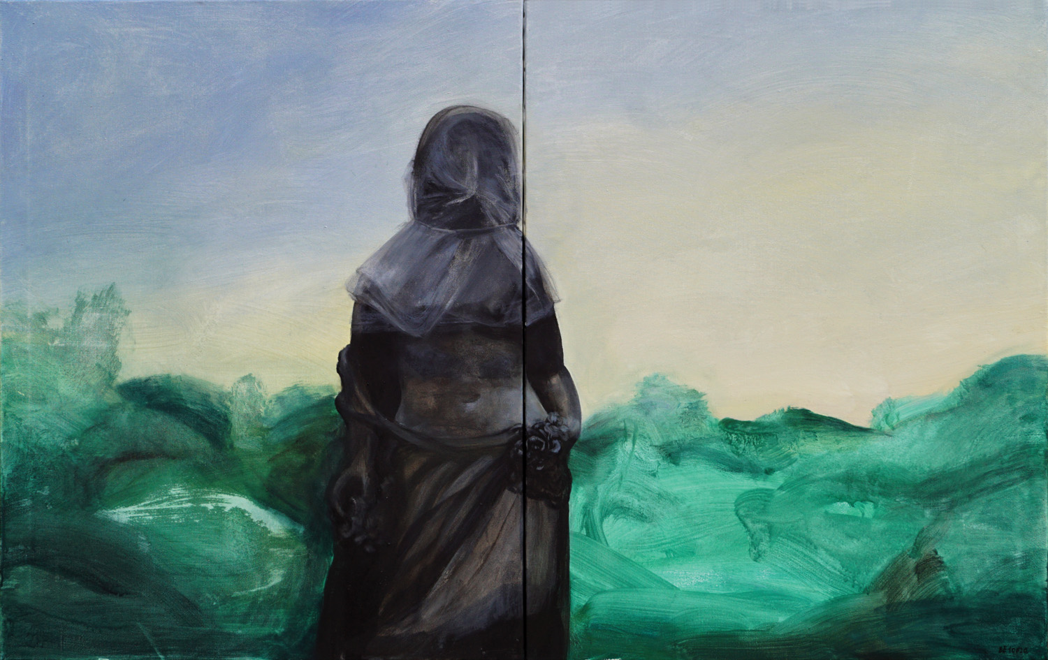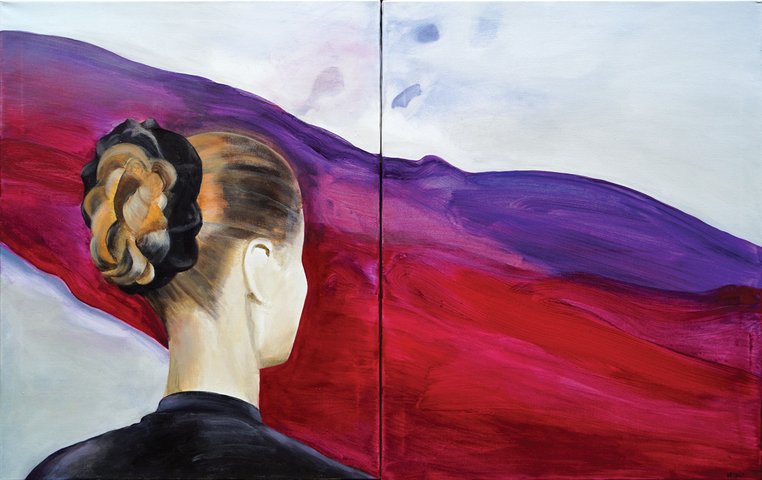 „Social distancing" z serii „2020", akryl na płótnie, 146x92 cm, (2x73x92 cm), Beata Konarska