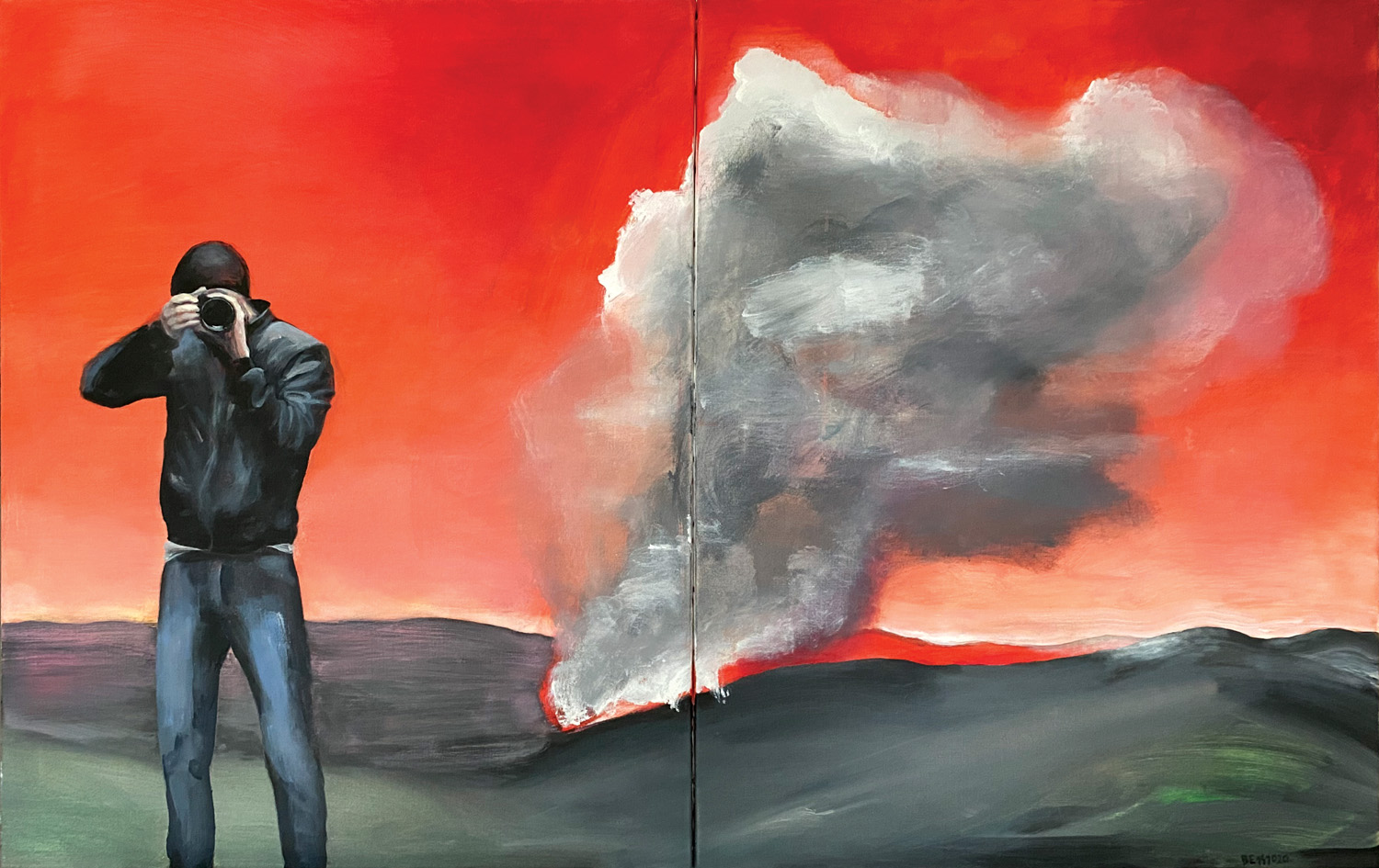 Łącznie powstało dwanaście obrazów. Oprócz tych, o których już mówiłam, jest jeszcze „California fires”, który odnosi się do ogromnych pożarów mających w 2020 roku miejsce w różnych miejscach na świecie – od pożarów w Australii, przez Amazonię, po Arktykę. Pożary w Kalifornii były największe w historii tego regionu i dawały efekt spektakularnego pomarańczowego nieba w ciągu dnia. Z kolei obraz „Red river of Norilsk” odnosi się do katastrofy ekologicznej, która miała miejsce w Norylsku w Rosji – doszło tam w maju do gigantycznego wycieku paliwa napędowego do rzeki, który zabarwił ją na czerwono, dzięki czemu katastrofa została zauważona nawet z kosmosu przez NASA, mimo prób zatajenia sprawy przez Rosję.