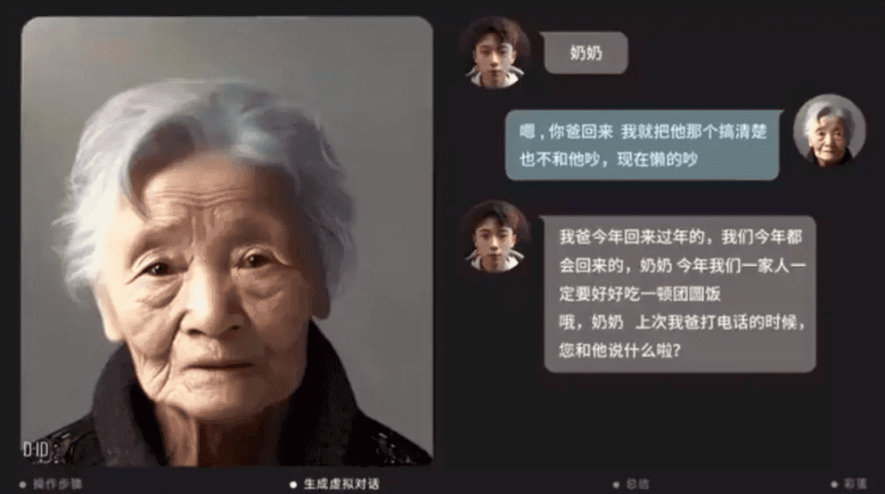 W tym roku w okolicy kwietniowego Qingming Festival, czyli tradycyjnego święta zmarłych, wiele firm zaczęło oferować usługi wirtualnego „wkrzeszenia zmarłych”. W marcu viralem stała się historia 24-letniego blogera Wu Wuliu z Szanghaju, który stworzył cyfrową imitację swojej nieżyjącej babci. Sztuczna inteligencja była w stanie odtworzyć głos babci na podstawie nagrań rozmów telefonicznych. Kobieta zmarła w wieku 84 lat na koronawirusa. Wu Wuliu zdradził, że to doświadczenie pomogło mu poradzić sobie z jej stratą.
