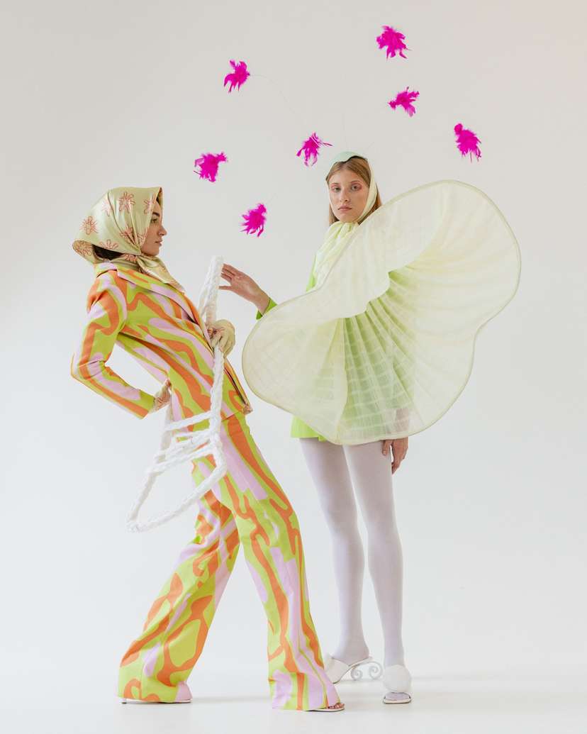 Łaskawiec nie powiela jednak schematów - w jej kolekcji nie znajdziecie przekopiowanych 1:1 schematów z Mody Polskiej, a eksplozję jasnych barw, organicznych dodatków czy fantazyjnych stylizacji. Bohaterki kolekcji to nie milicjantki czy panny z domów z betonu, a bardziej uwspółcześnione Calineczki, otoczone chmarą motyli.