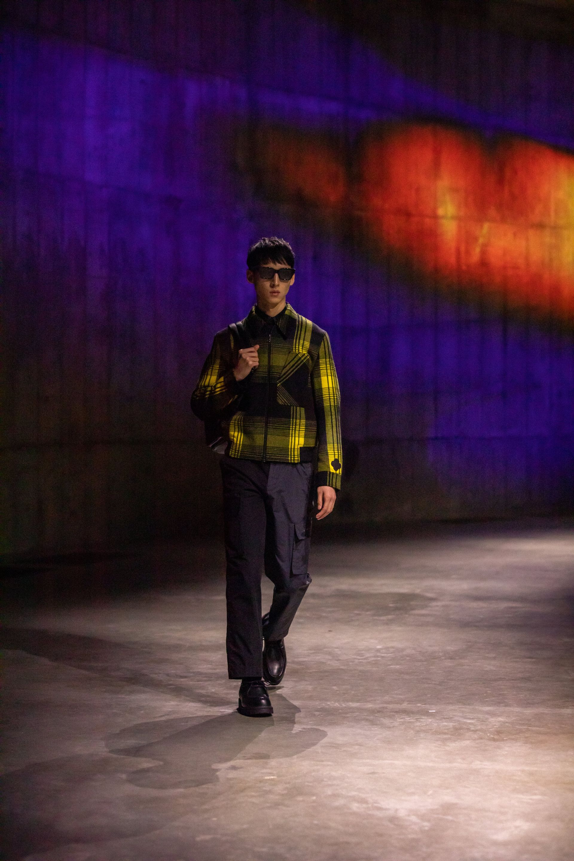 Dzięki projekcjom kolorów i animacji na powierzchniach ogromnej kolistej przestrzeni, goście zostali natychmiast wprowadzeni w sam środek porywającej instalacji, inspirowanej cyklem życia motyli. Poeta i artysta James Massiah skomponował dedykowaną oprawę dźwiękową, związaną z przewodnią ideą kolekcji. Kalejdoskopowe formy stały się tłem dla modeli i zabrały gości w podróż, której celem jest metamorfoza. Massiah, przemierzając wybieg wokół publiczności, na żywo recytował słowa, które zostały narracją wieczoru.