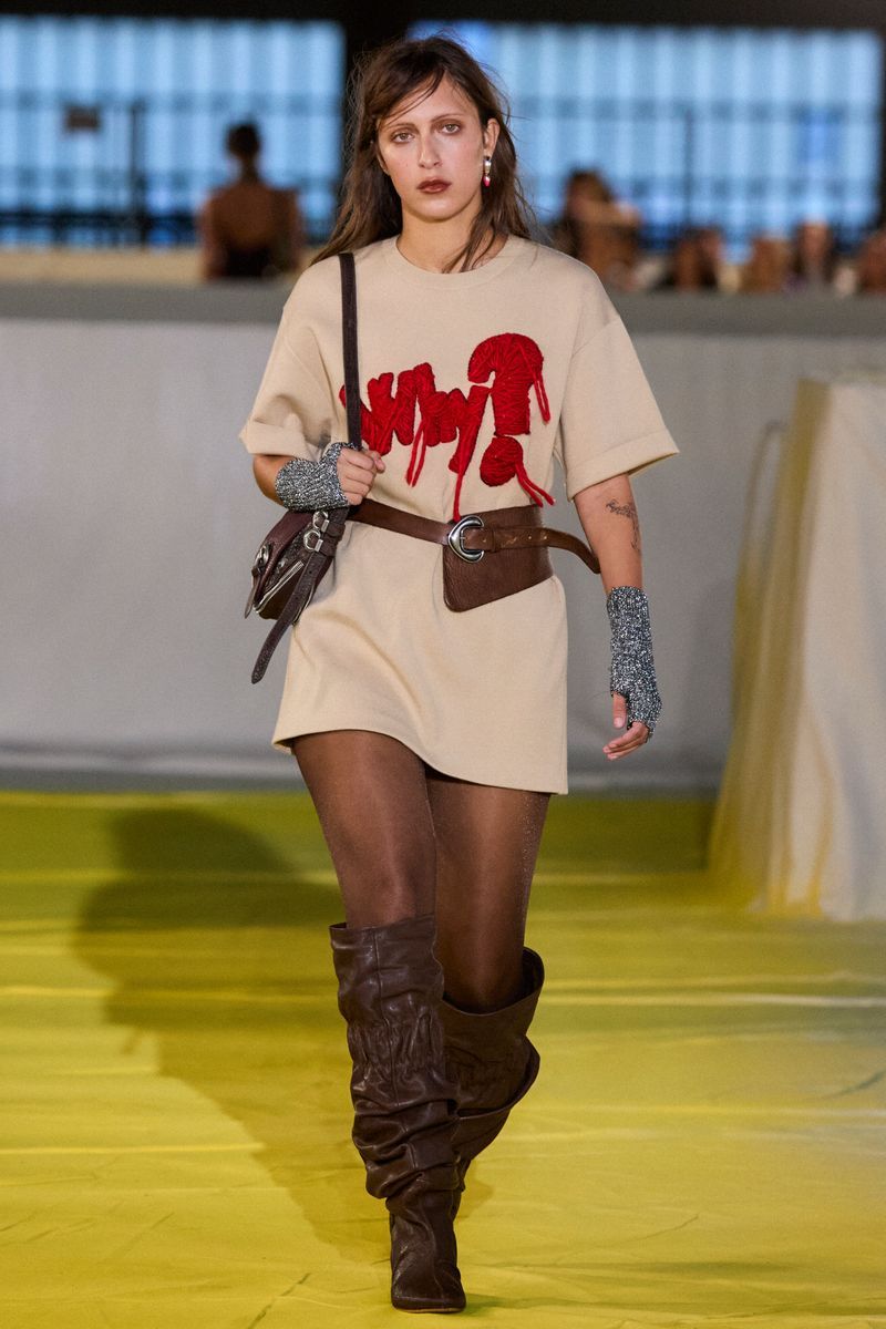 Pierwsza część pokazu to lekcja warstwowości przeprowadzona przez mistrzów. Szaliki o ekstremalnej długości, pasy przewiązane przez warstwy ubrań, kolczyki wielkoformatowe – to wszystko składało się na niezwykle precyzyjne, a jednocześnie swobodne looki. Buty oversized, szerokie bluzy z kilkoma czapkami nałożonymi jedna na drugą to propozycje dla tych, którzy lubią, gdy moda wymaga od nich pewnego wysiłku intelektualnego.