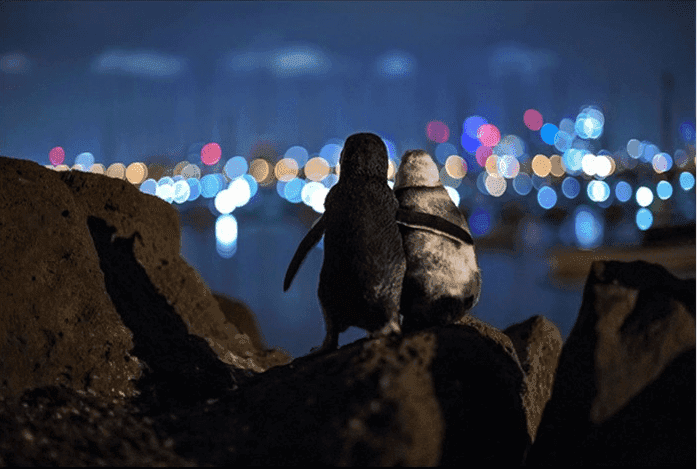 Australijski artysta Tobias Baumgaertner ponad rok temu sfotografował w Melbourne dwa przytulające się pingwiny. Teraz poruszający widok dwóch obejmujących się zwierząt błyskawicznie obiegł media społecznościowe. Wykonane już dość dawno temu zdjęcie okazało się bardzo nośne w czasach, kiedy wszyscy potrzebujemy pocieszenia. Co może przynieść nam potężniejszą falę pozytywnych myśli niż fotografia tulących się pingwinów, które obserwują rozświetloną panoramę miasta.