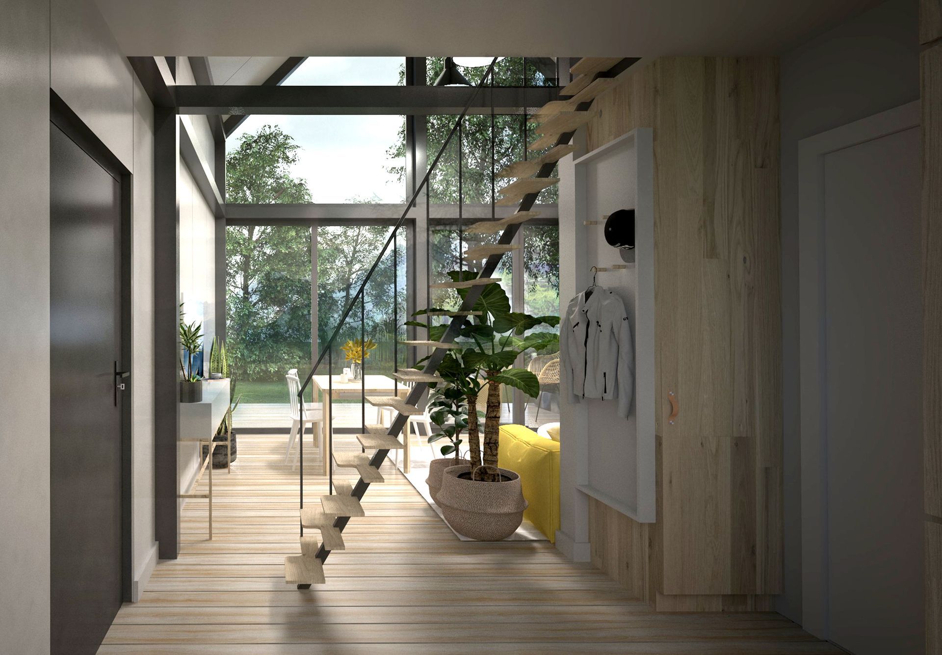 W projekcie przewidziano różne opcje wykończenia. Do wyboru są m.in. modułowy taras, różne rodzaje schodów czy antresola. Na czym polega tytułowa modułowość MM35? Chodzi o powtarzalność rozwiązań konstrukcyjnych i materiałowych, co umożliwia powiększenie budynku czy ewentualną rozbudowę w przyszłości przy jednoczesnym zachowaniu jego prostej i zwartej formy.