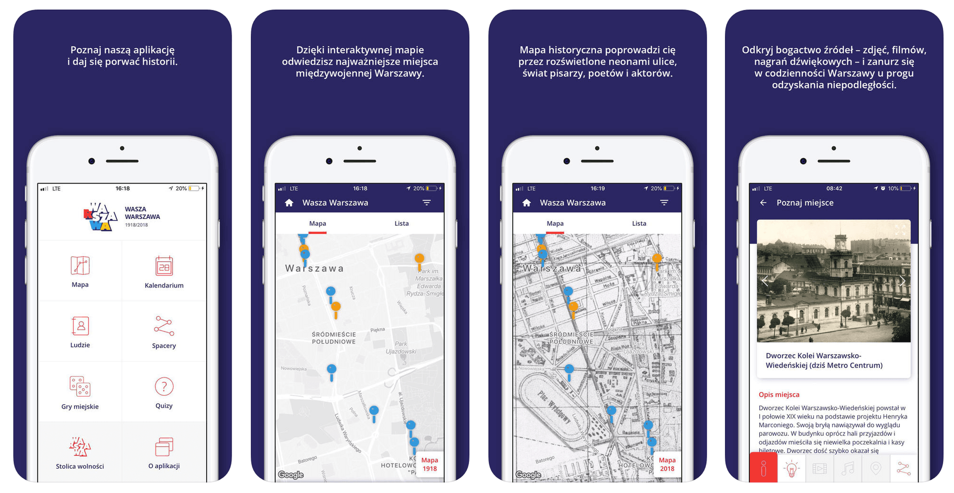 - interaktywne mapy Warszawy z 1918 i 2018 roku,