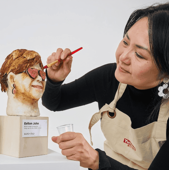 Największą uwagę przykuwa rzeźba Eltona Johna. Podobnie jak w innych rzeźbach, głównym składnikiem jest ryż do sushi. Kolor „skóry” udało jej się pozyskać za sprawą jasnego sosu sojowego, a wędzona ryba posłużyła za włosy. Artystka sprezentowała mu także kultowe okulary w kształcie serca, które dzięki imbirowi stały się różowe. Oprawki podkreśliła glonami.