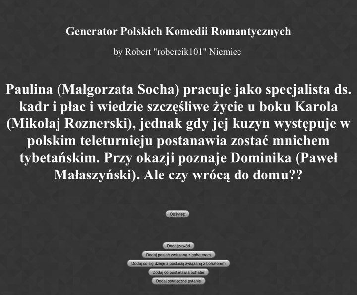 przykładowe streszczenie na stronie Generator Polskich Komedii Romantycznych