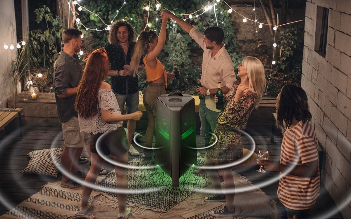 Gry i selfies to jednak nie wszystko, ponieważ żadna impreza nie uda się bez dobrego sprzętu muzycznego i zróżnicowanej playlisty. Idealnym rozwiązaniem są tu głośniki Samsung Audio Power, które są wyposażone w funkcje skrojone na miarę potrzeb imprezowiczów oraz gwarantują najwyższą jakość dźwięku. Dzięki wydłużonemu ruchowi jednostki basowej 10-calowy Wbudowany Głośnik Niskotonowy zapewnia ulepszone brzmienie basu w modelu MX-T70, a dwukierunkowy dźwięk sprawia, że muzyka dociera nawet do najdalszych zakamarków pomieszczenia. Do tego dochodzi funkcja wzmocnienia basów odtwarzana za pomocą przycisku Bass Booster, który podkręci atmosferę i wzniesie doznania na zupełnie nowy poziom. A co najważniejsze, głośniki Samsung Power Audio charakteryzują się sporą mocą – model MX-T50 500 W, a model MX-T70 aż 1500W.
