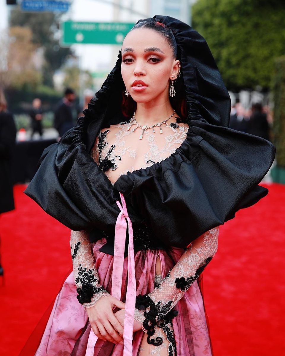 Na wyróżnienie w kategorii najbardziej oryginalnych stylizacji zasługuje bez dwóch zdań FKA Twigs. Jeden z dziennikarzy porównał jej kreację do dziewiętnastowiecznej żony czekającej, aż mąż powróci z wojny. Sukienka, która stanowi swoistą hybrydę czarnej, gotyckiej peleryny z różową, balową spódnicą, wywoła dyskusję za sprawą swojej niejednoznacznej formy.