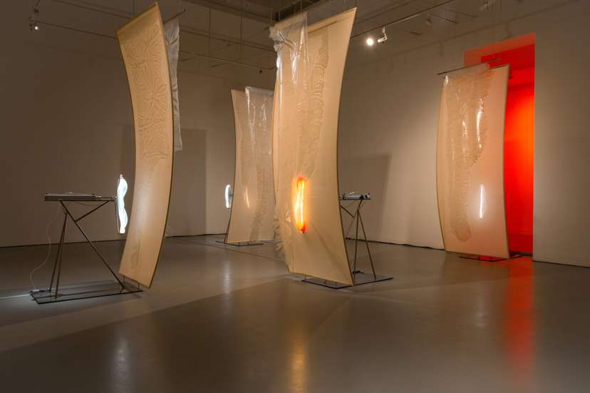Wystawa „Progi/ Thresholds” to kolejny etap tej artystycznej eksploracji. Prezentowane rzeźby kinetyczne wykonano ze stali nierdzewnej, szkła, silikonu oraz elastycznych tkanin.