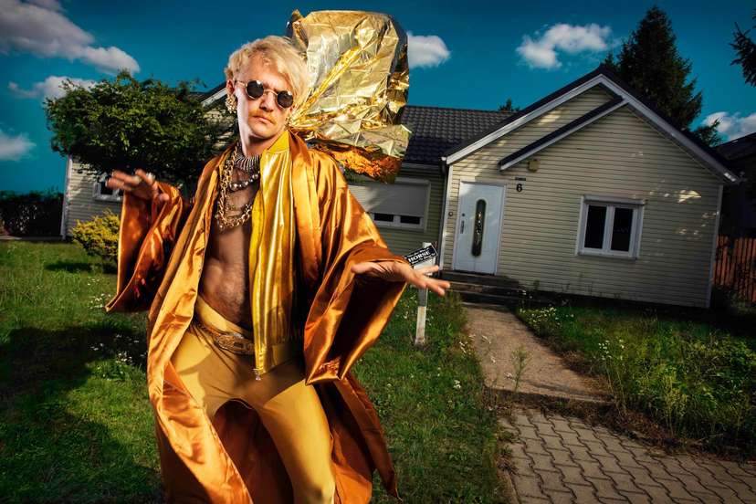 Soft erotic joke. Bawię się pojęciem biednego bogactwa - znajduję na targach staroci tanią biżuterię, która wygląda na trzystuletnią, do tego złotą kurtkę w lumpeksie i jednoczęściowy strój kameleona. To kicz związany z ludzkimi marzeniami, które są ogólnodostępne. Bogactwo, które można kupić taniej. Raperzy też lubią przesadę, z tym że oni robią to na poważnie, a ja trochę się tym bawię.