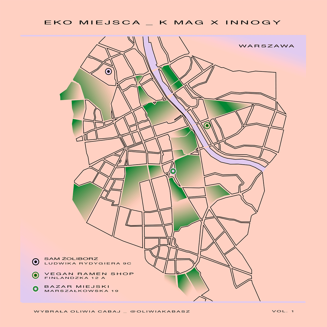 W każde z miejsc wytypowanych przez Olivię można dojechać elektrycznym BMW i3 od innogy. Firma wprowadziła właśnie największy elektryczny car sharing w Polsce (i jeden z największych w Europie) innogy go!, który pozwala jeździć ekologicznie. Sam samochód nadaje się do recyklingu w 95%, a w stacjach innogy jest ładowany energią pochodzącą ze źródeł odnawialnych (konkretnie wiatru). Samochody od innogy go! mogą jeździć bus pasami, nie obejmuje ich opłata za miejski parking i w dodatku są przestronne - będziecie zdziwieni, widząc, ile może się zmieścić w czteroosobowym aucie. Co więcej, można je wynająć za pomocą aplikacji, a jedno ładowanie wystarcza na przejechanie 180 kilometrów. Dla tych, którzy zdecydują się na krótki wyjazd za miasto, innogy przygotowało pakiety dobowe (239 zł za 24 godziny wypożyczenia, płatne po zakończonym najmie) i możliwość wypożyczenia kabla do samodzielnego ładowania, który wystarczy podłączyć do zwykłego gniazdka, a by go otrzymać, trzeba jedynie skontaktować się z infolinią i umówić na odbiór kabla. Z innogy go! spokojnie możemy jechać w każdą głuszę, auto jest wyjątkowe ciche. Póki co samochody od innogy dostępne są tylko w Warszawie, ale mamy przeczucie, że to tylko kwestia czasu, aż pojawią się również w innych miastach.