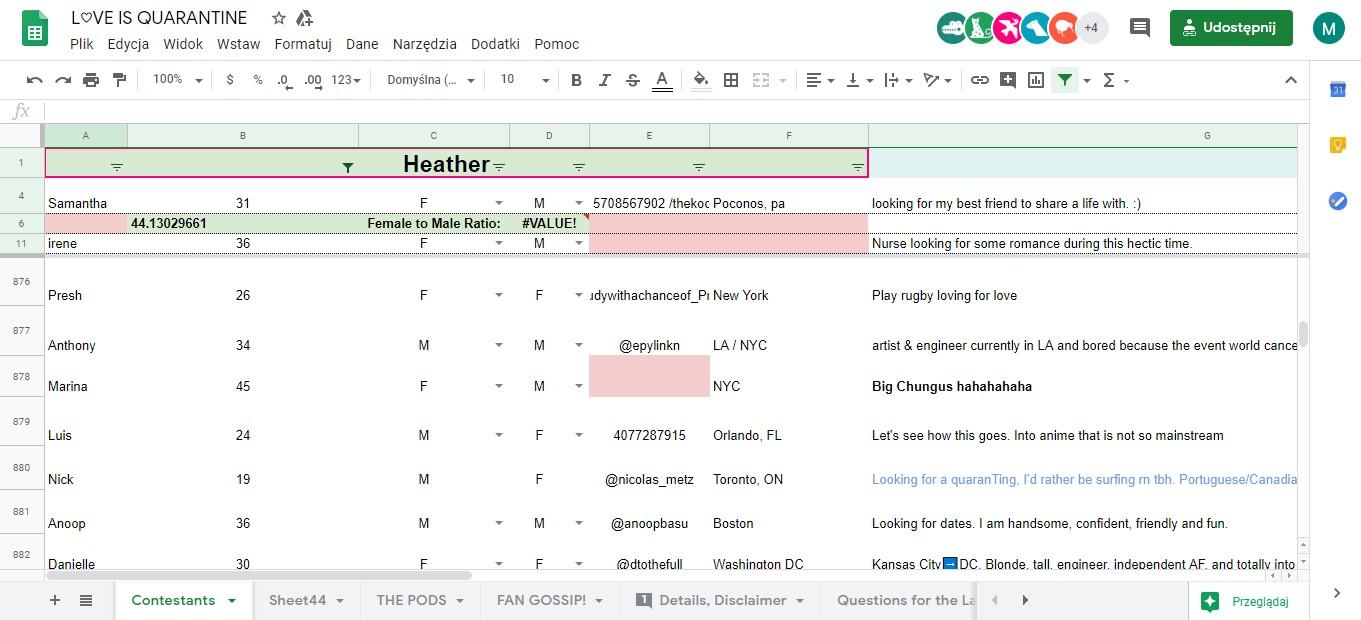 Z czasem widzowie komentujący w sekcji plotkarskiej w Google Sheets i na Instagramie, zaczęli odnajdywać konta swoich faworytów i utworzyła się naprawdę zaangażowana społeczność. Każdy "sezon" trwa jedną noc i dotychczas było ich pięć. Filmiki uczestników są dodawane na bieżąco, więc to niemal jak oglądanie reality show. Czasem sam dokument Google Sheet ogląda pięćdziesiąt osób tylko, by zobaczyć, kto zostanie z kim sparowany.