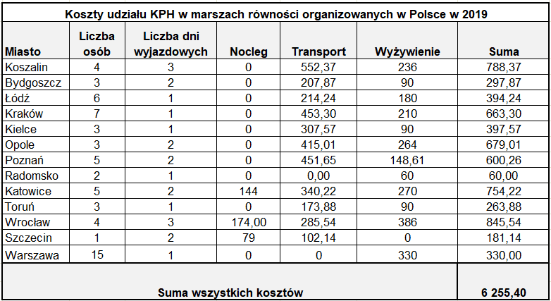 W odpowiedzi organizacja KPH opublikowała kosztorys udziału wolontariuszy w marszach: