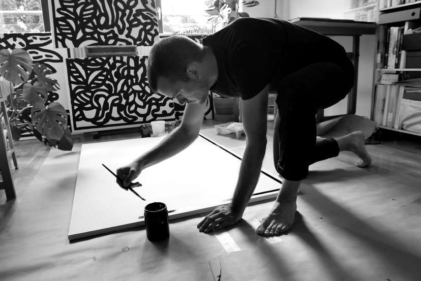 Pracowałem na tymi obrazami bardzo intuicyjnie i spontanicznie. Nie robiłem żadnych szkiców i przygotowań. Przez kilka godzin malowałem jeden obraz za drugim. Gdy byłem niezadowolony, zamalowywałem i zabierałem się za następny. Takie sesje malowania kojarzą mi się z jam session. Rozpoczynałem pracę nad jakimś motywem, który naturalnie zmieniałem i tak rodziły się nowe motywy. Malowałem szerokim pędzlem i czarną farbą. To trudne narzędzie, które daje nieskończone możliwości i jest dla mnie próbą koordynacji gestu i ekspresji oraz oka i ręki. To też rodzaj ćwiczenia, weryfikacji tego, jak w danej chwili coś interpretuję wizualnie. Ta praca to również przerwa od pracy projektowej różniącej się zdyscyplinowaniem, terminowością czy warsztatem.