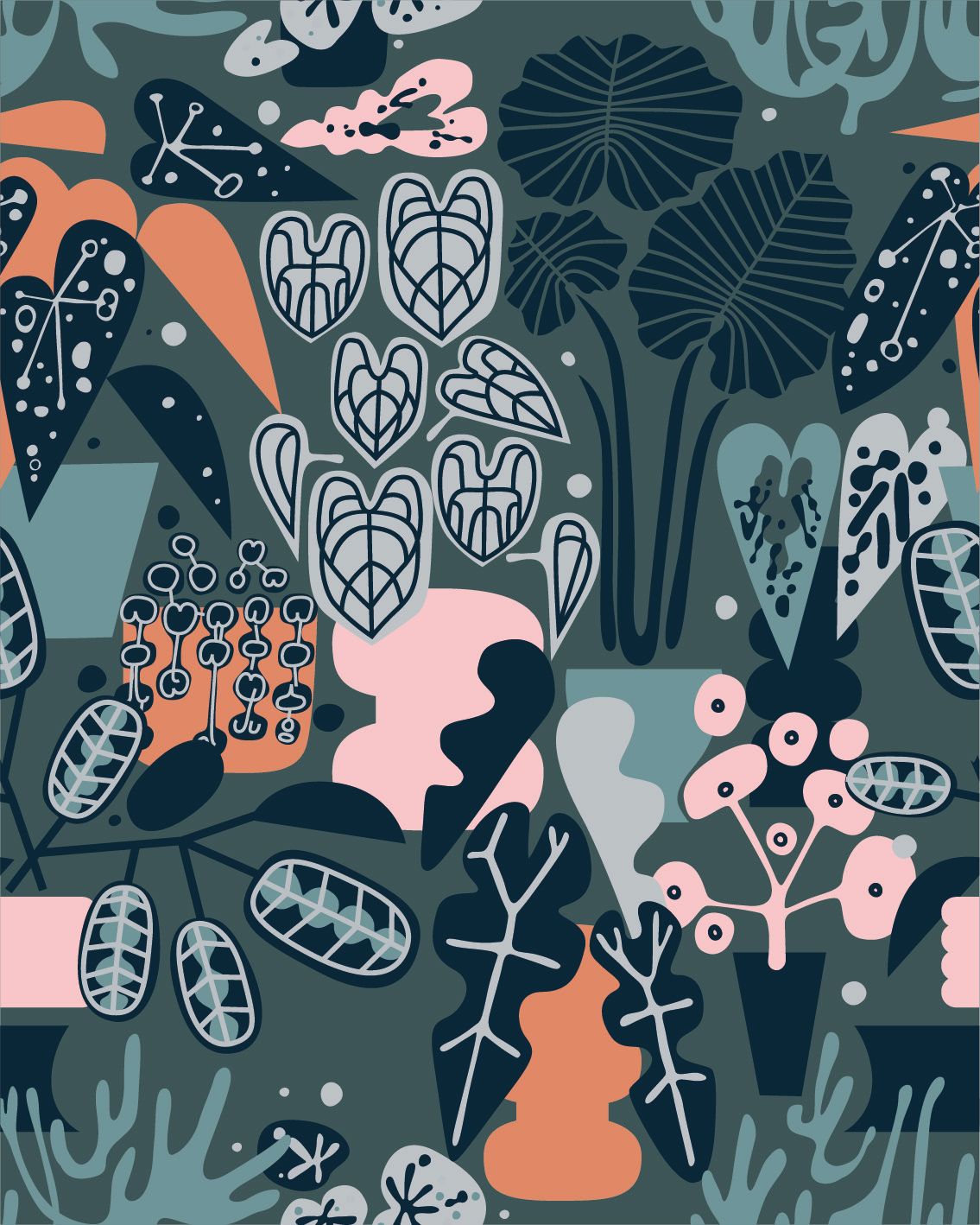 Logo i całą identyfikację graficzną przygotowała znana ilustratorka Katarzyna Bogucka, która debiutowała u boku znanego duetu Pan Tu Nie Stał. Jej nawiązujący do konwencji retro styl komiksu i minimalu idealnie oddaje charakter "W liściach - plants and coffee". Zaprojektowane przez nią patterny pojawią się na pierwszej serii doniczek, które będzie można kupić we "W liściach". Do współpracy będą zapraszani kolejni artyści, których grafiki zdobić będą kolejne krótkie serie ceramiki użytkowej.