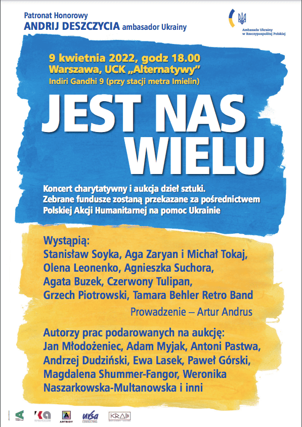 W ramach wydarzenia „Jest nas wielu” odbędzie się również aukcja wyjątkowych prac autorstwa m.in.: Jana Młodożeńca, Adama Myjaka, Andrzeja Dudzińskiego, Antoniego Pastwy, Magdaleny Shummer-Fangor, Ewy Lasek, Pawła Górskiego czy Weroniki Naszarkowskiej-Multanowskiej. Na aukcji zostaną wystawione także inne cenne przedmioty, m.in. książki Olgi Tokarczuk z podpisem autorki. To niepowtarzalna okazja, aby upolować prawdziwe perełki polskiej sztuki nowoczesnej w szczytnym celu.