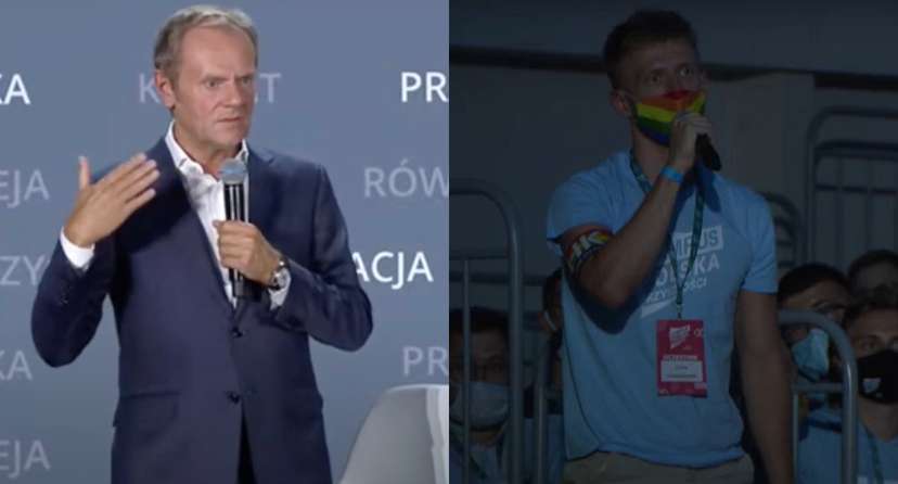 Od piątku w Olsztynie trwa młodzieżowy Campus Przyszłości, czyli wydarzenie organizowane przez ruch prezydenta Warszawy Rafała Trzaskowskiego. Jednym z gości był Donald Tusk, lider PO i Europejskiej Partii Ludowej, który wziął udział w oficjalnym otwarciu oraz wraz z Trzaskowskim odpowiedział na pytania uczestników. Wśród publiczności znalazł się m.in. aktywista Linus Lewandowski, należący do grupy sportowej Homokando. – Kiedy będę mógł wziąć ślub z moim chłopakiem? – zapytał Lewandowski, za co został nagrodzony gromki brawami. Choć Tusk odpowiedział na pytanie, nie wszyscy są zadowoleni.