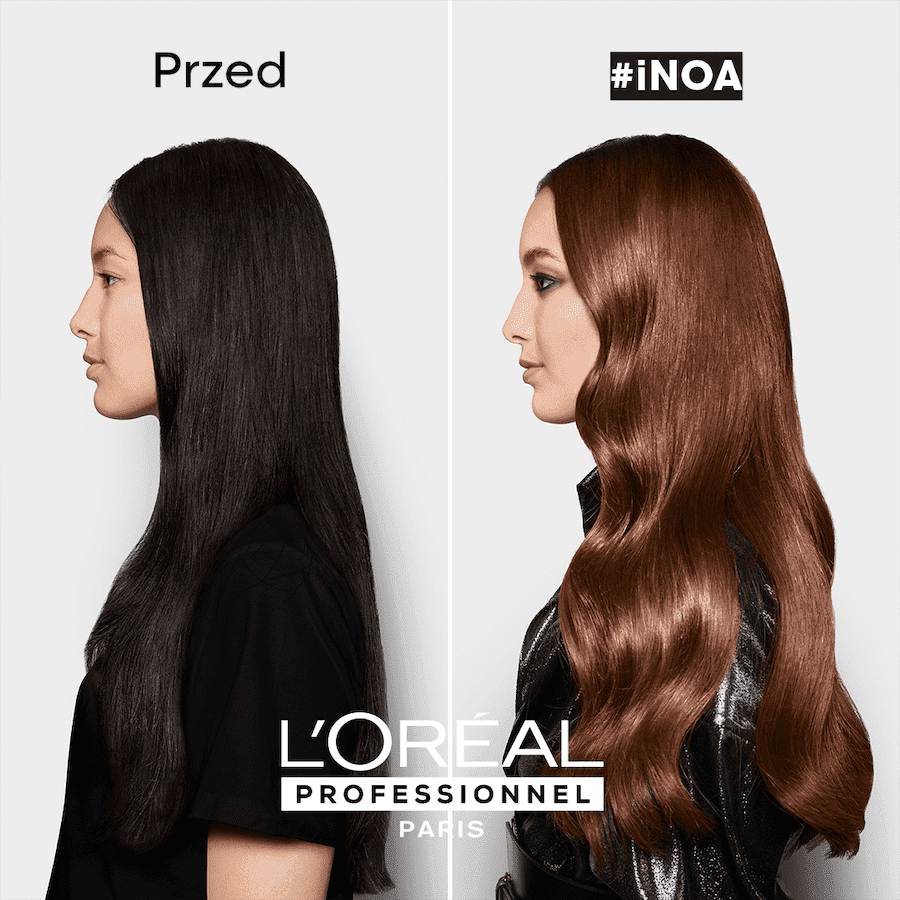Tego wszystkiego można być pewnym decydując się na koloryzację iNOA, która wykonywana jest w salonach L’Oréal Professionnel Paris przez specjalistów. To technika wykorzystująca farbę, która nie zawiera amoniaku, co odpowiada na potrzeby wielu pań – aż 3 na 4 kobiety poszukują koloryzacji bez tej substancji, która sprawia, że włosy stają się przesuszone, słabe i łamliwe. Jednocześnie amoniak jest nośnikiem pigmentu, dlatego wydawać by się mogło, że w przypadku farb do włosów jest niezbędnym składnikiem. To przekonanie obala koloryzacja iNOA, której wysokie, aż 60-procentowe stężenie olejków w formule, zastępuje amoniak i umożliwia wprawia w ruch pigmenty znajdujące się we włóknie włosa. Co więcej koloryzacja iNOA nie wydziela żadnych zapachów, a skóra głowy nie odczuwa dyskomfortu podczas zabiegu. Jest to wyjątkowo przyjemny rytuał piękna, wykonywany rękami wykwalifikowanego profesjonalisty. Rezultaty są niezaprzeczalne – do 100% pokrycia w niestandardowych, naturalnych odcieniach, z poprawioną jakością włosów i intensywnym połyskiem.