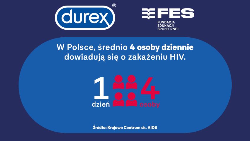 1 grudnia, w światowy dzień AIDS, wystartowała wspólna akcja Durex i Fundacji Edukacji Społecznej. Durex od zawsze wspiera działania na rzecz bezpiecznego seksu, ponieważ prezerwatywy są jedynym środkiem antykoncepcyjnym, który pomaga chronić przed zakażeniem. Dlatego w tym roku na rzecz FES Durex przekaże darowiznę prezerwatyw o łącznej wartości 90 000 zł. Dodatkowo kupując prezerwatywy marki Durex w dniach 1-15 grudnia w sieci Rossmann, każdy może wesprzeć cele światowego dnia AIDS. Część zysku ze sprzedaży zostanie przekazane na rzecz FES. Środki wykorzystane zostaną na testowanie HIV i wsparcie osób żyjących z wirusem.