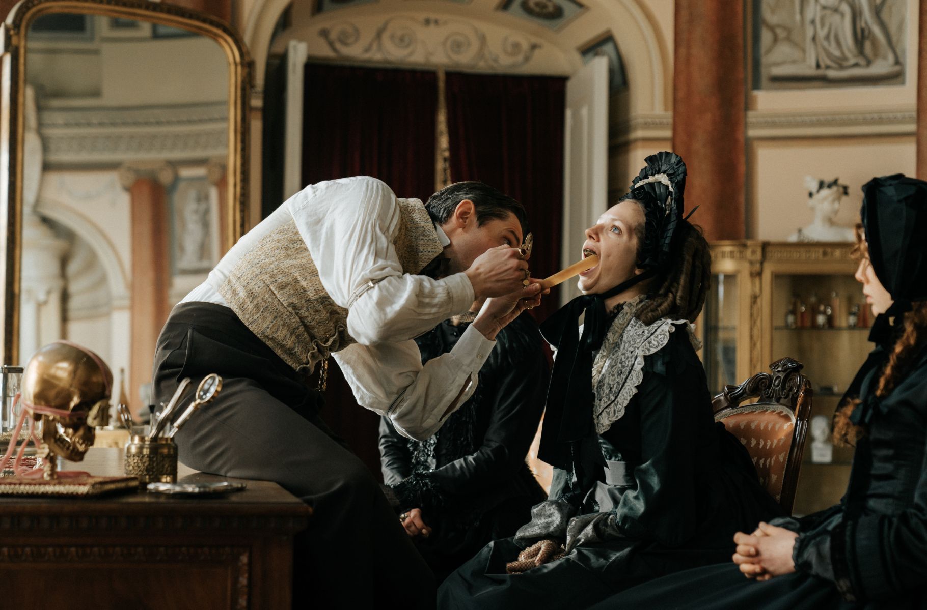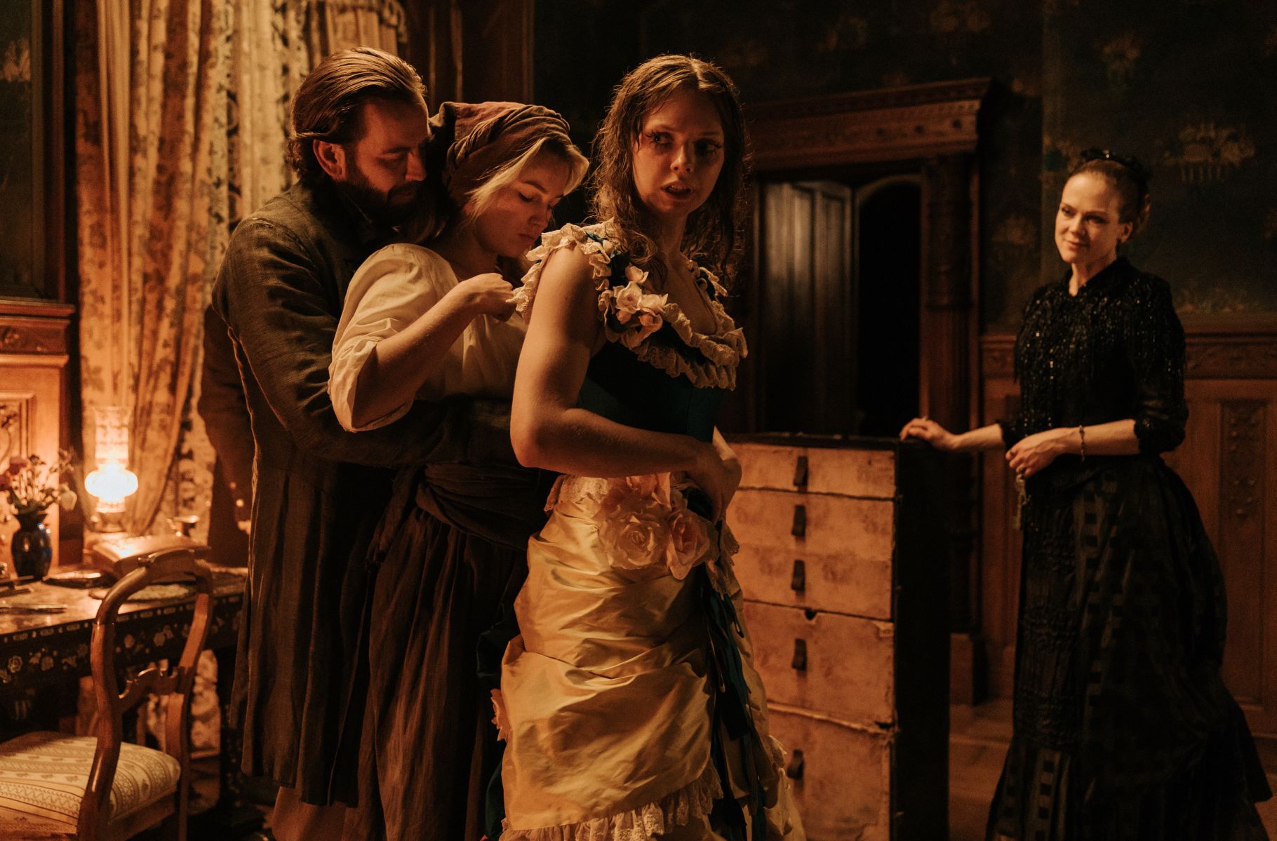 Główna bohaterka (w tej roli świetna Lea Myren) przechodzi spektakularną przemianę z nieśmiałej, rozmarzonej dziewczynki w bezwzględną i zdeterminowaną, ale również nieco zdesperowaną, młodą kobietę. „Brzydka siostra” zręcznie balansuje pomiędzy komedią i horrorem, zachowując przy tym ogromną samoświadomość. Film wyrywa z widzów równie wiele chichotów, co odgłosów obrzydzenia. Bo, nie przesadzając, momentami bywa naprawdę obrzydliwie. Tak jak wspomniałam, wszystko toczy się w czasach dawnych, a więc bohaterka nie ma do dyspozycji dzisiejszej technologii. Wyobraźcie więc sobie, jak może wyglądać procedura nastawiania nosa czy aplikacji sztucznej rzęs… Tak, właśnie tak.