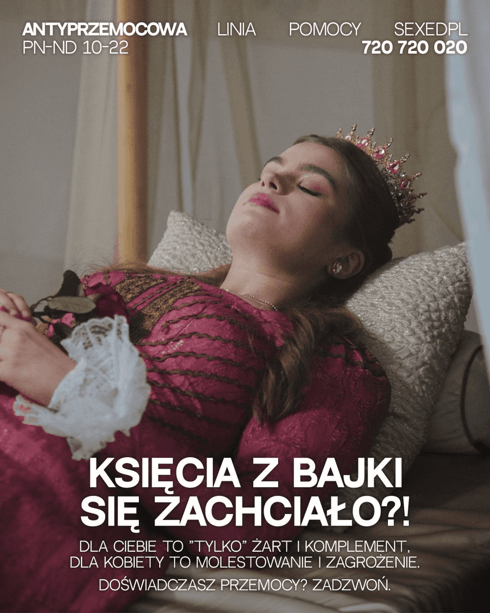 Kampania „Księcia z bajki się zachciało?!” w przewrotny sposób porusza temat przemocy seksualnej, o której mówi się coraz więcej, ale wiele jej form wciąż uważanych jest za „niewinny żart”. Tymczasem – jak podkreślają twórcy kampanii – to właśnie na takich zachowaniach, jak seksistowskie komentarze, catcalling, wysyłanie intymnych zdjęć bez zgody, budowana jest kultura pozwalania na przemoc seksualną.