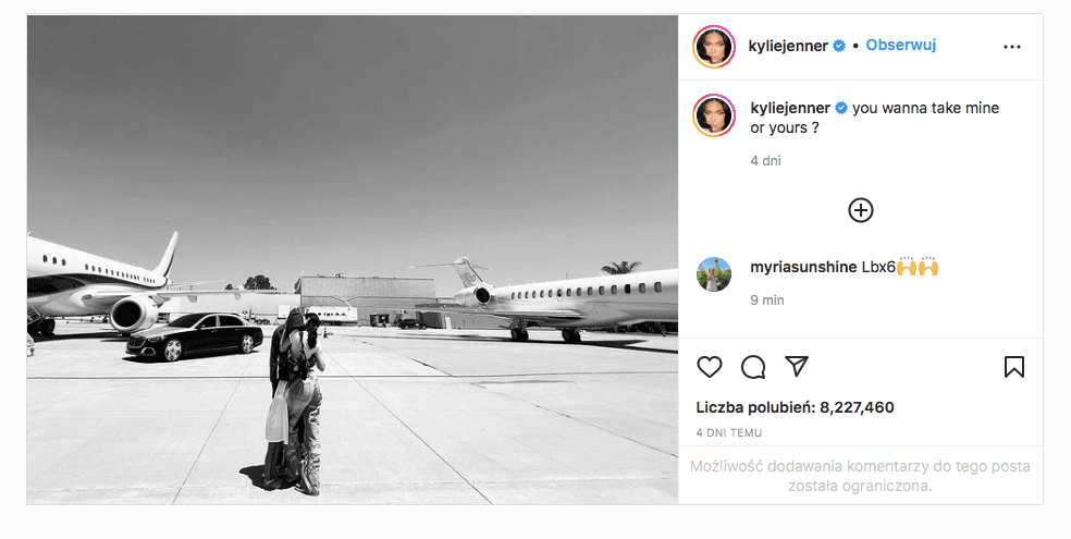 Nie otrzymała jednak reakcji, której oczekiwała - w komentarzach zawrzało, internauci ostro krytykowali parę przypominając im o katastrofie klimatycznej i ilości śladu węglowego jaki zostawia po sobie jedna taka prywatna podróż. Jednak prawdziwy szok przeżyliśmy gdy za pomocą aplikacji do śledzenia tras samolotów wyszło na jaw, że Kylie używa swojego odrzutowca do pokonywania kilkunasto lub nawet 3-minutowych lotów! Co ciekawe i tragiczne zarazem, aby pokonać 12-minutową trasę samolotem, która autem zajęłaby około 40 minut musi najpierw dostać się na lotnisko znajdujące się w odległości 30 minut jazdy samochodem i to w kierunku zupełnie przeciwnym do trasy lotu. Nie da się już chyba bardziej ostentacyjnie nadużywać własnego bogactwa.