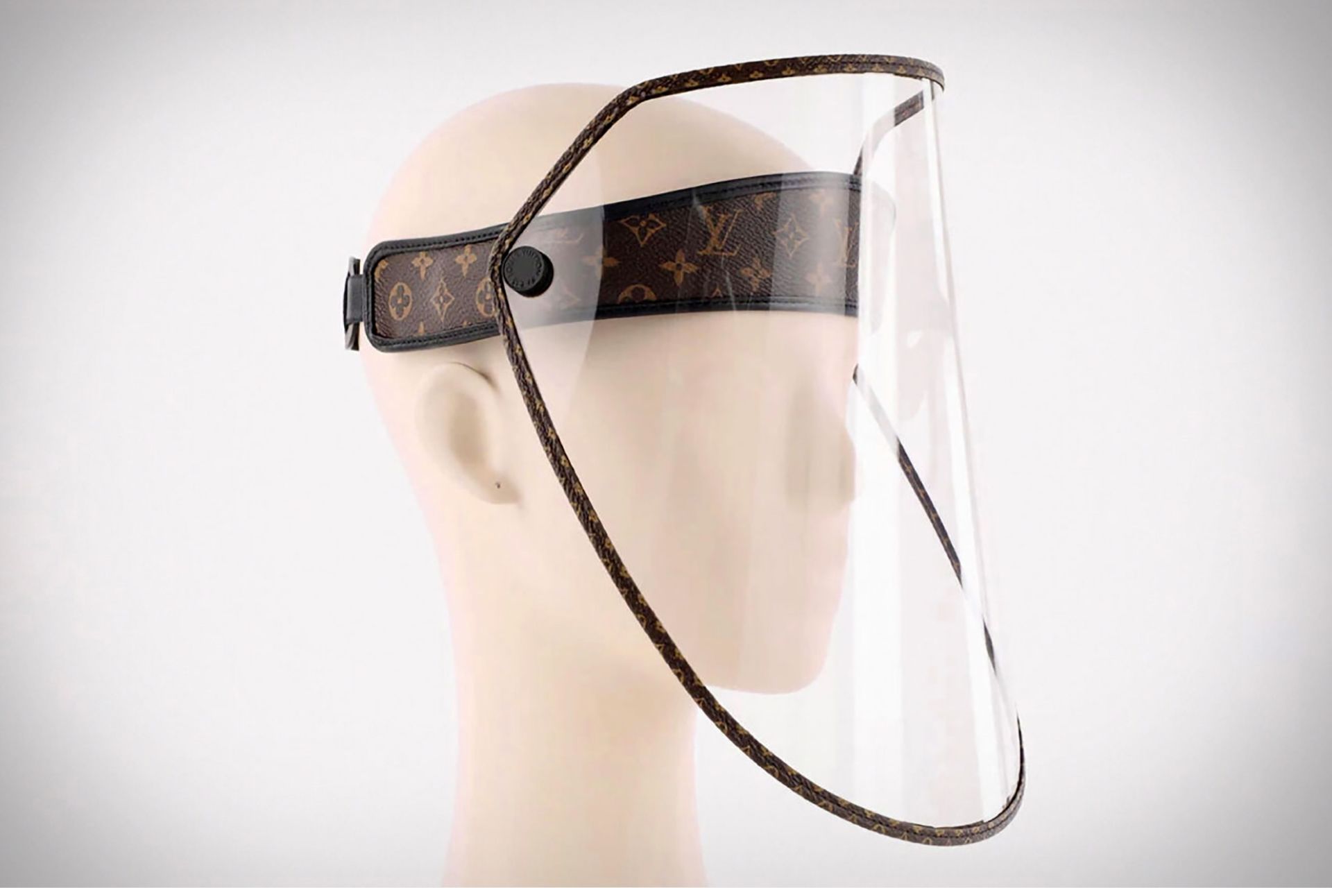 Francuski dom mody Louis Vuitton odpowiedział na zapotrzebowanie kienteli w czasie pandemii COVID-19 i zaprojektował przyłbicę z charakterystycznym brązowo-złotym monogramem LV. Stylową osłonę twarzy można także podnieść i nosić jako czapkę z daszkiem.