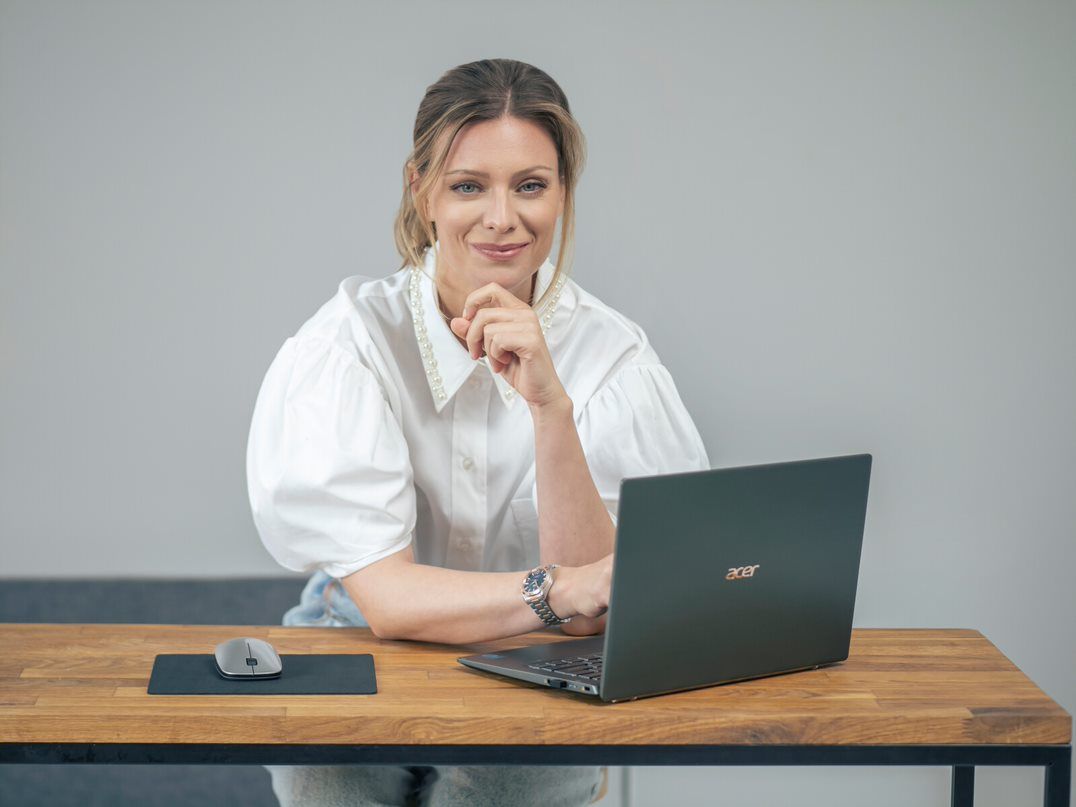 Jeśli tak jak Magda – ambasadorka Acer Swift - potrzebujecie mobilnego i wszechstronnego narzędzia do pracy w najróżniejszych warunkach, sprawdźcie nowy laptop Acer Swift 5. Poza wygodnymi wymiarami i eleganckim designem, laptop wyposażony jest w responsywną i wydajną platformę Intel® Evo™, najlepszą w tej klasie łączności Wi-Fi, doskonale wyglądającą obudowę i pojemny akumulator, który skutecznie naładujesz w mgnieniu oka. Niewielkie wymiary nie przeszkodziły też producentom w wyposażeniu Swifta w złącza USB-C, HDMI i dwa USB3.2, dzięki którym do komputera można podłączyć na przykład dodatkowy monitor, zewnętrzną kartę dźwiękową i wszelkiego rodzaju kontrolery – bez konieczności używania przejściówek.