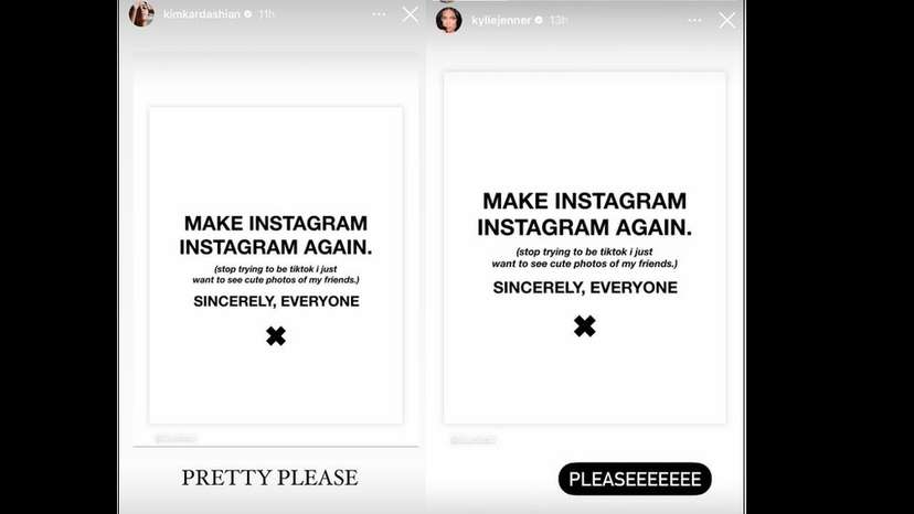 W ostatnim czasie na Instagramie można zauważyć krążącą info-grafikę z wielkim, wytłuszczonym napisem MAKE INSTAGRAM INSTAGRAM AGAIN, przestań być Tiktokiem. Obrazek udostępniły nawet największe influencerki - Kim Kardashian oraz Kylie Jenner. O co chodzi?