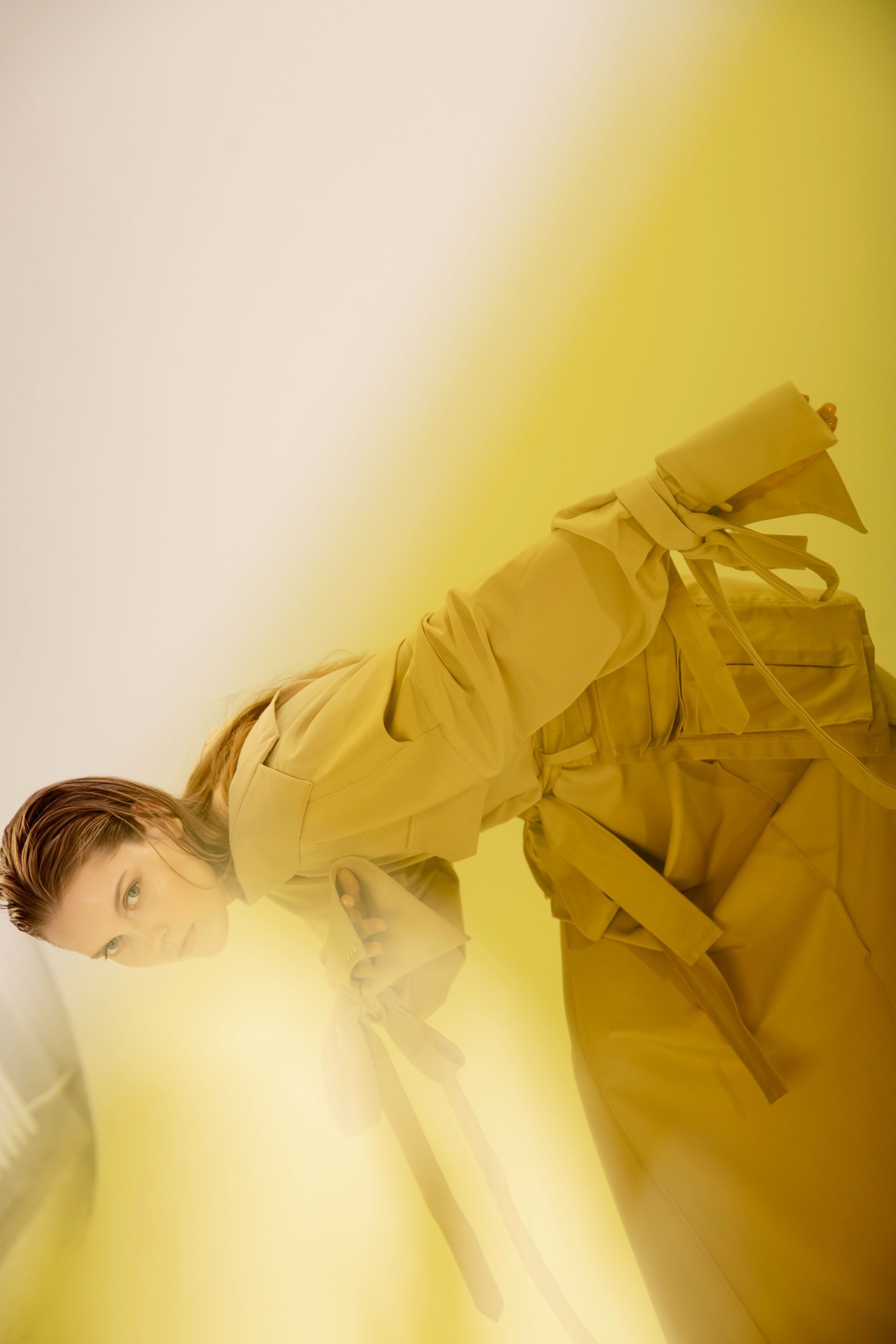 Ponieważ sama mam w szafie rzeczy, które bardzo lubię właśnie za wielofunkcyjność. W zależności od okazji mogę je dowolnie wystylizować – wykorzystać na co dzień czy na eleganckie wyjście. Nigdy mi się nie nudzą, a ja mam poczucie, że wykorzystuję je w 100%. Dzięki temu nie potrzebuję kupować masy ubrań. Moje zakupy zawsze są przemyślane. Pięć razy się zastanawiam zanim coś kupię, by nie przyczyniać się do większej produkcji śmieci. Jest mi z tym dobrze. Pomyślałam, że będę zachęcać ludzi do tego samego, a w moich projektach podrasuję ten koncept. Stworzę coś abstrakcyjnego, coś, czego na pierwszą rzut oka nie dałoby się nosić w dany sposób. Mam tu na myśli między innymi spódnicę, która wygląda jak marynarka. Trzyma się w talii dzięki masywnemu paskowi, do którego została przymocowana zatrzaskami, ale można ją od niego „uwolnić” i nosić jak to mamy w zwyczaju – na ramionach.