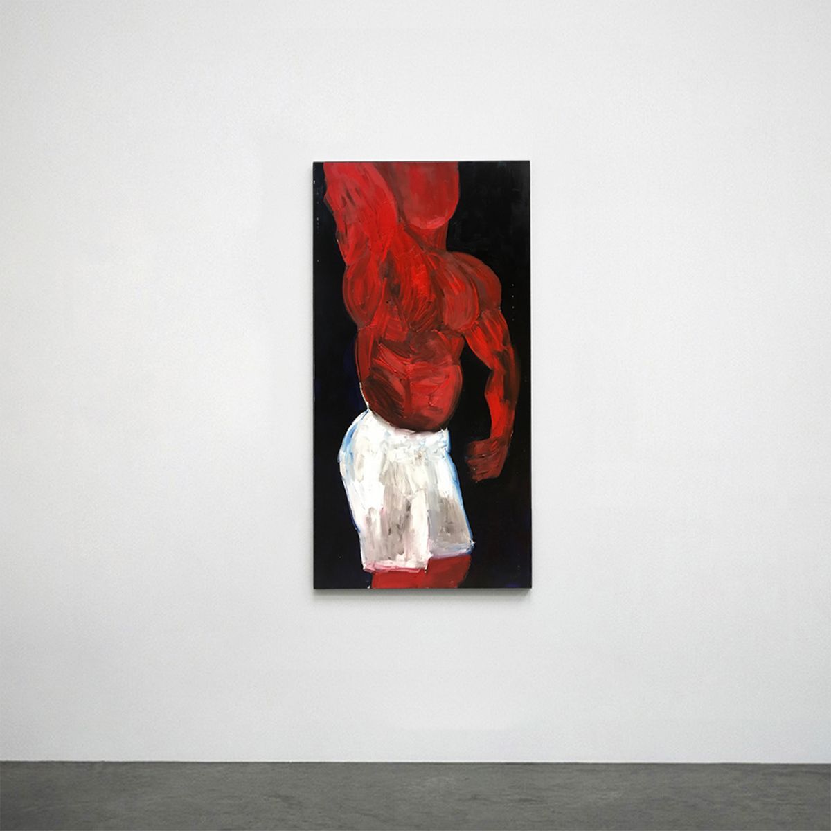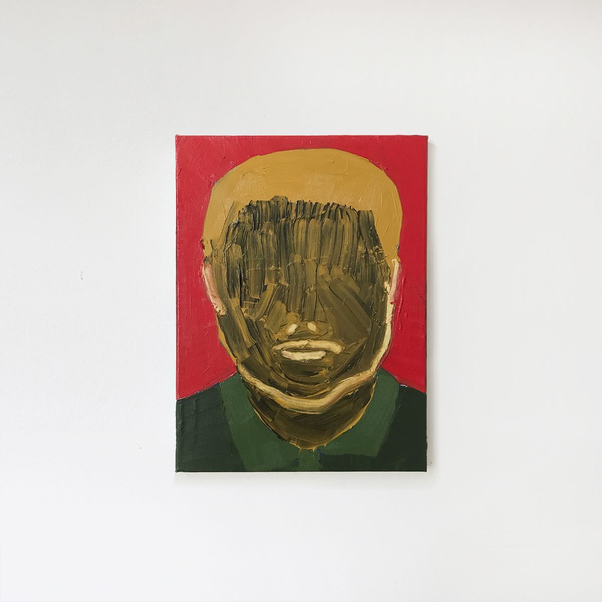 To spowodowało, że moje obrazy wyglądają tak, a nie inaczej. Gdy zaczynałem, to miałem bardzo ambitny plan, żeby malować realistyczne portrety – ale im dłużej ich wszystkich malowałem, tym bardziej się okazywało, że robi się z tego karykatura. Bardzo prosto jest wziąć tych mężczyzn, ich zdjęcia i potraktować ich z góry: czasami są nie najlepiej ubrani, mają śmieszne miny, czasem się prężą z muskułami do aparatu. Łatwo jest na nich patrzeć prześmiewczo, a ja tego nie chcę. Przestałem malować im rysy twarzy, teraz staram się szukać charakteru postaci w inny sposób – zmieniam kolory, biorę ich trochę w wizualny nawias. Daje mi to dużą swobodę artystyczną, ale też pozwala wyrwać się z pułapki ośmieszania ich – bo uważam, że to jest bardzo istotny temat. Całe szczęście o mężczyznach mówi się coraz więcej, ale często jest to tylko ślizganie się po powierzchni.