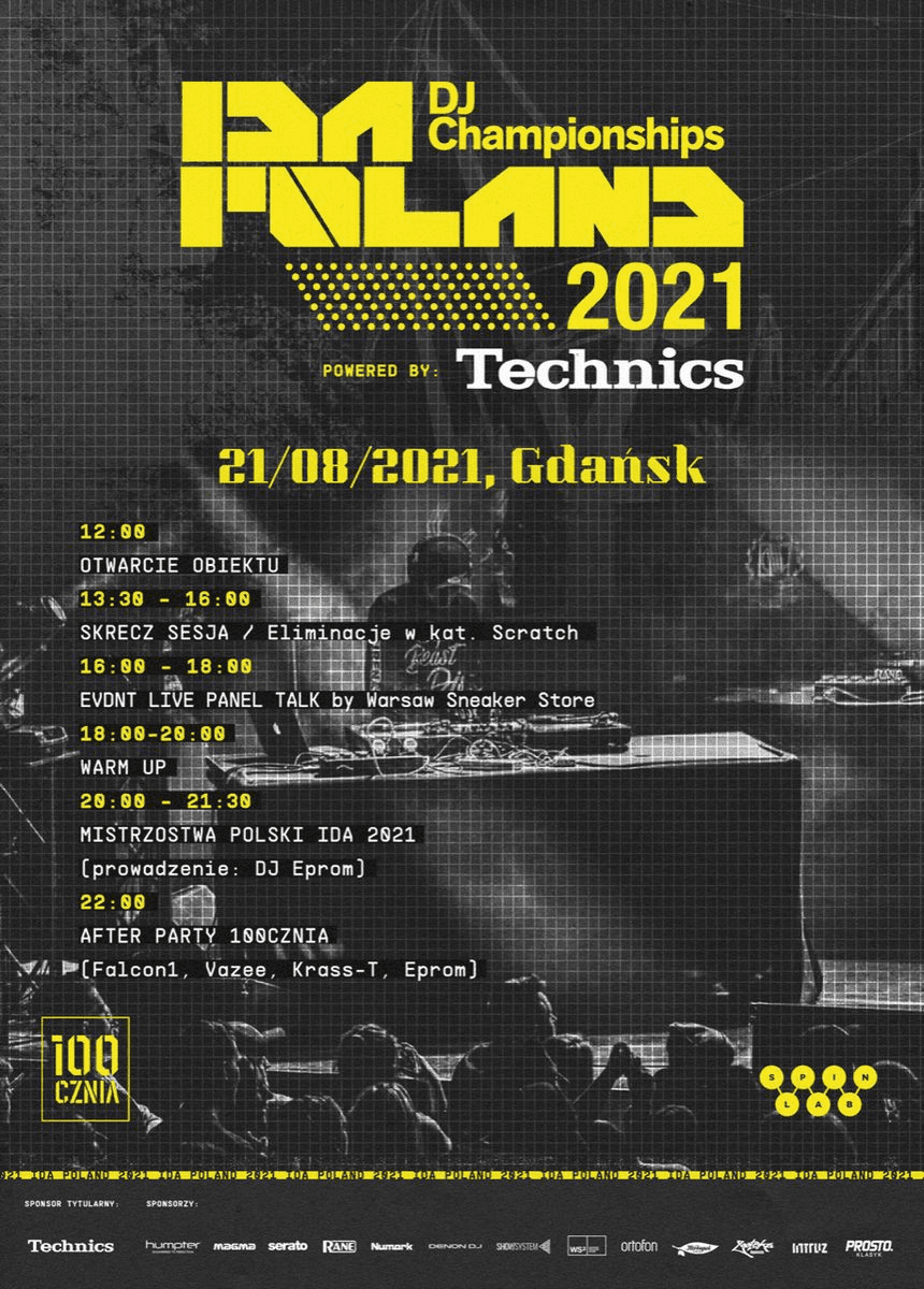 W sobotę 21 sierpnia w industrialnej przestrzeni gdańskiej 100czni po raz piętnasty polscy DJ-e będą walczyli o tytuł najlepszego. Mistrzowie zostaną wyłonieni w trzech kategoriach: scratch, show i technical. Zwycięzcy krajowej edycji wezmą udział w światowym finale IDA pod koniec 2021 roku.