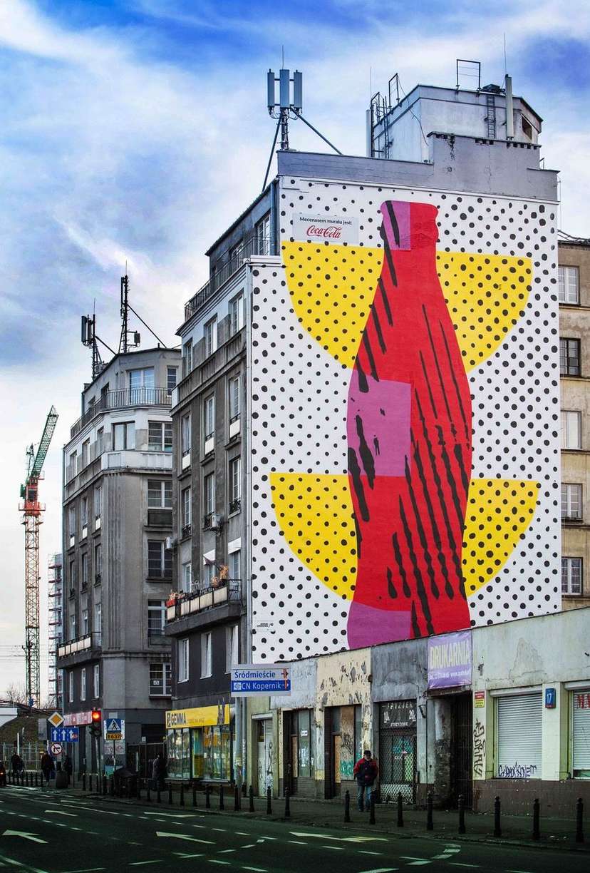 To dzieło Piotra Młodożeńca - wszechstronnie uzdolnionego artysty, który ma koncie m.in. wykonany w 2001 projekt znaku Coexist dla Museum of the Seam w Jerozolimie. Plastyk wykonał swoją najnowszą pracę pod mecenatem marki Coca-Cola i wprowadził w krajobraz jednej z głównych ulic prawobrzeżnej Warszawy popartowy powiew.