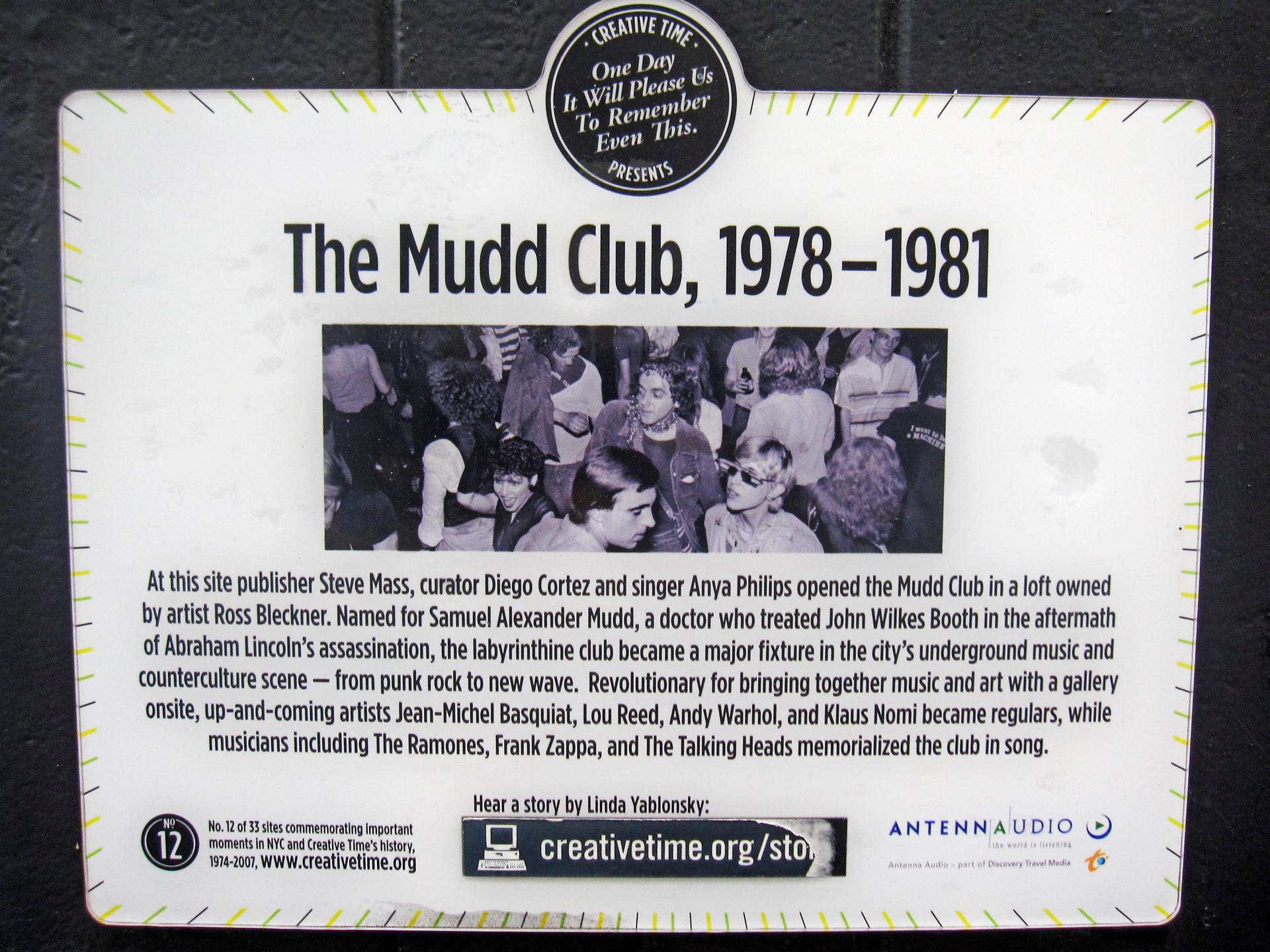 Alternatywą dla raczej luźnego Club 57 był położony w bliskiej odległości Mudd Club, a główną różnicę, oprócz relatywnie surowego wnętrza bardziej formalnego lokalu, stanowił dobór używek. W Club 57 królowały rozweselające psychodeliki, w Mudd alkohol i twardsze narkotyki. Centralną postacią tego drugiego miejsca był młody Jean Michel Basquiat. Prekursor graffiti i piewca mrocznej, wizualnej abstrakcji występował tam ze swoim zespołem Gray, w którym udzielał się także undergroundowy aktor i reżyser Vincent Gallo. Podobne muzyczne próby podejmował rozpoczynający dopiero swoją przygodę z filmem Jim Jarmusch. Poza dużo bardziej nieprzystępnym repertuarem koncertowym, w klubie prezentowano także literaturę. Wśród jej autorów znaleźli się chociażby William Borroughs i Allen Ginsberg, a przy odrobinie szczęścia przy barze można było spotkać Andy’ego Warhola, Davida Bowiego czy Lou Reeda.
