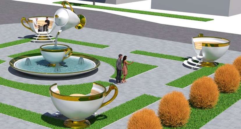 Na rynku staną ławki w kształcie filiżanek oraz fontanna w kształcie filiżanki z podwieszanym imbrykiem. Choć może budzić to skojarzenia z parkami rozrywki czy właśnie „Alicją w Krainie Czarów”, inspiracją był znak rozpoznawczy miejscowości.