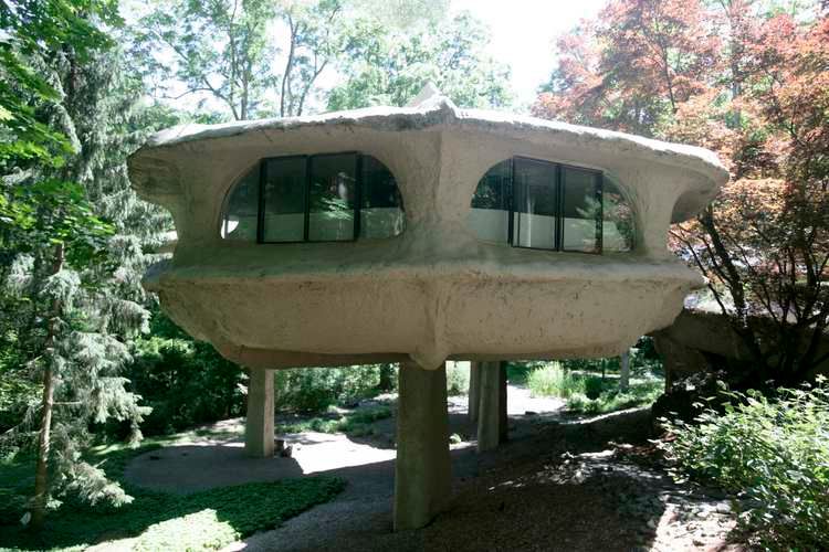 Wygląda jak marzenie grzybiarza, a to tylko dom w stanie Nowy Jork. Wybudowany w 1972 roku z projektu Jamesa H. Johnsona, wzorowany był na baldachach kwiatów marchwi. Jego jasno-brązowy kolor bardziej jednak przywodzi na myśl grzyby niż kwiatki. Budynek złożony jest z czterech elementów, umieszczonych na nogach wzmocnionych betonem. Jeden z nich służy jako jadalnia i salon, jeden jest kuchnią, a dwa stanowią sypialnie. Dom był zleceniem od Roberta i Marguerite Antell, małżeństwa prawnika i artystki. To właśnie ona była pomysłodawczynią projektu, miała też swój wkład w wykonaniu płytek, którymi wyłożone jest wnętrze domu.